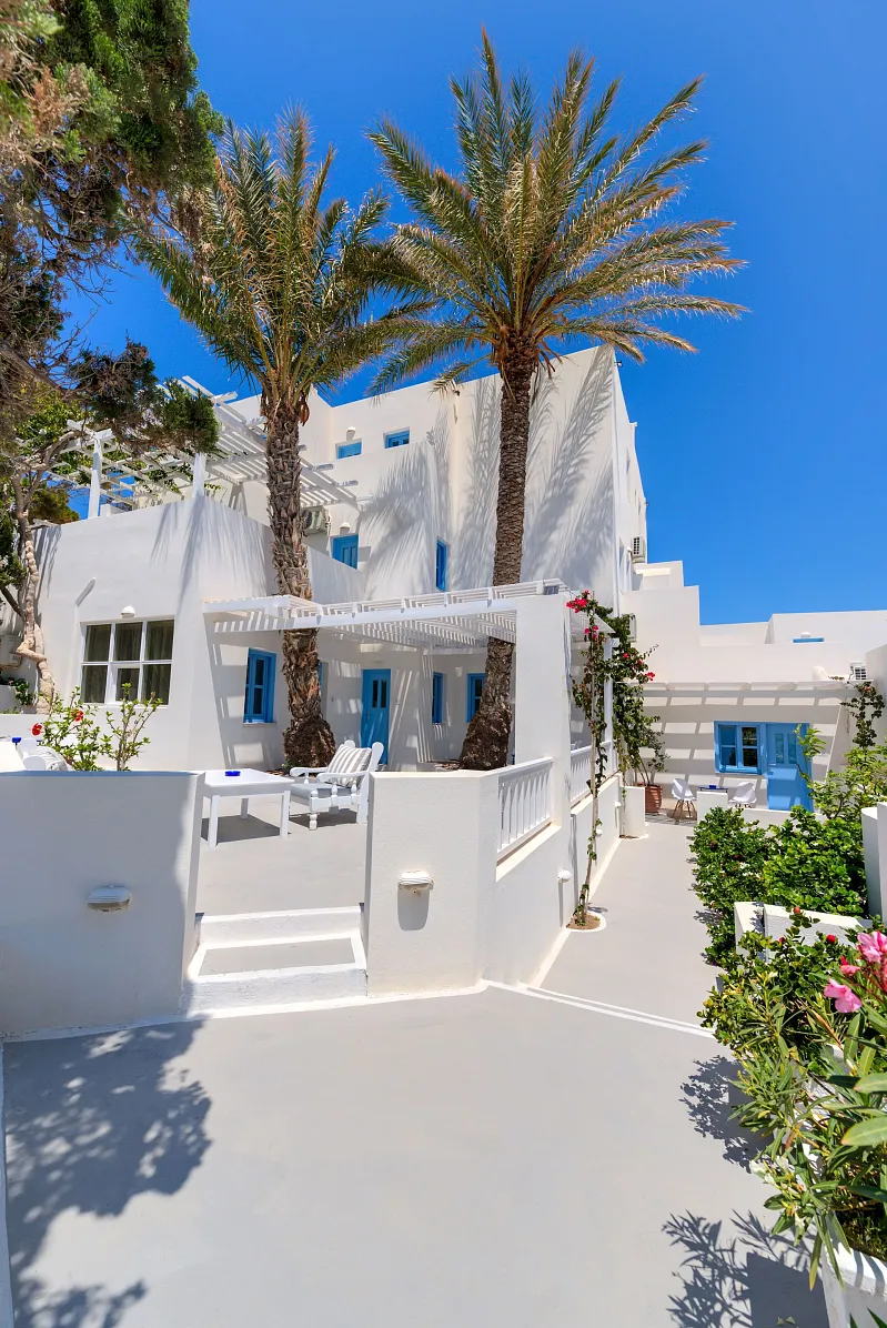 Hotel Sigalas is located in the outskirts of Kamari. The center of Kamari where you can find cafés, restaurants, sea sports, scuba diving center and shops is only 400 meters away.