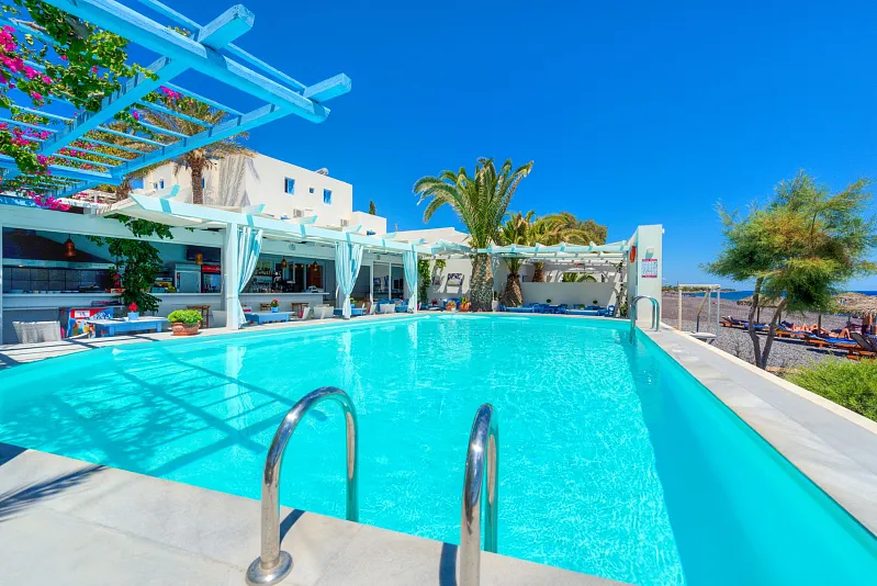 Hotel Sigalas is a small, friendly, family owned and operated hotel situated direct on the famous black beach of Kamari in the eastern part of Santorini. With over 40 years of operation is one of the first hotels on the island.