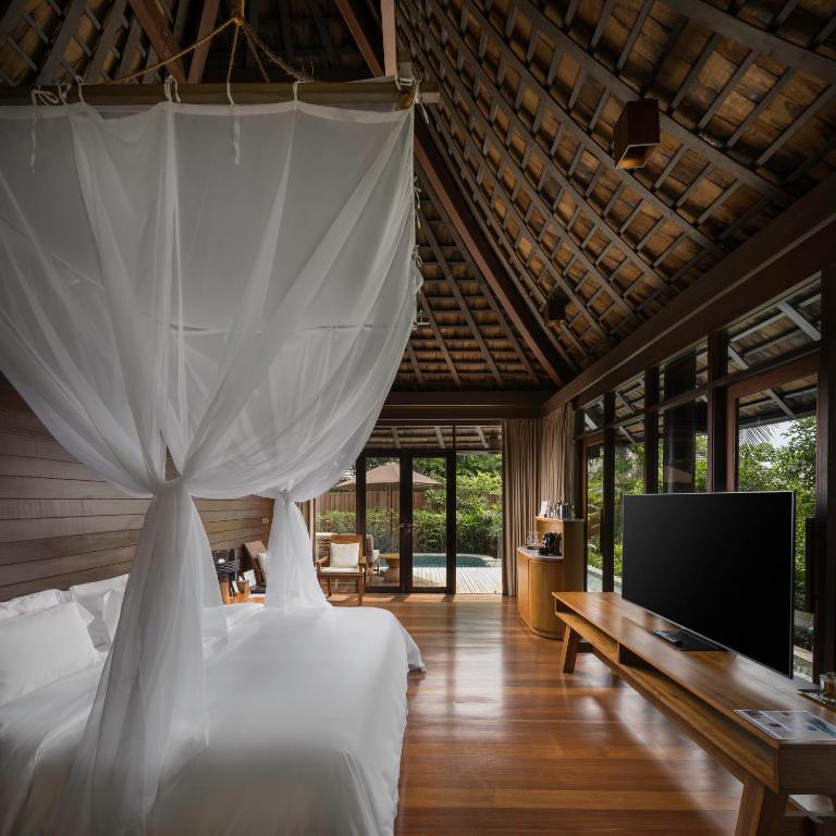 Camerele spatioase, in stil thailandez, au mobilier luxos din lemn de tec si facilităti moderne, inclusiv TV cu ecran plat, iPod docking station si minibar. Băile private au cadă si uscător de păr.