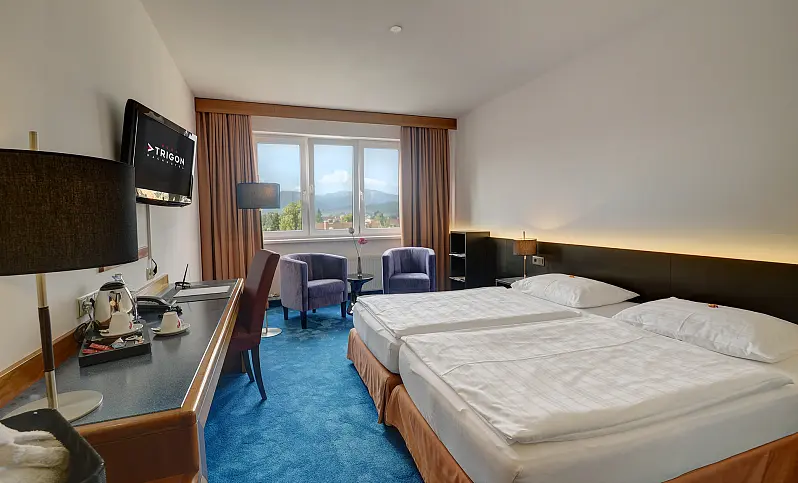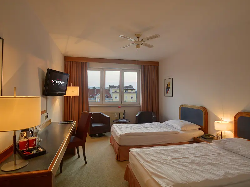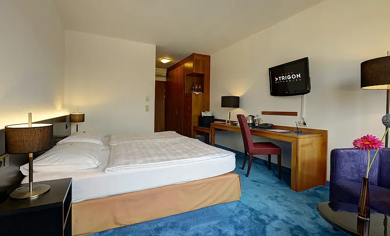 The Hotel ATRIGON is perfectly located above the roofs of the provincial capital Klagenfurt. From here you can reach the trade fair, the city center, the train station and of course the beautiful Lake Wörthersee in no time. Some of it you can even reach on foot in just a few minutes. For bike lovers there are very beautiful bike paths in the immediate vicinity, which you can explore with the in-house rental bikes. Free parking as well as underground parking spaces are available for your stay.