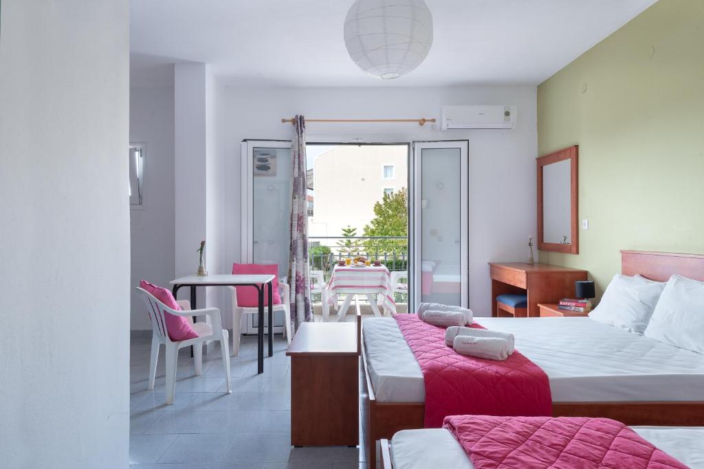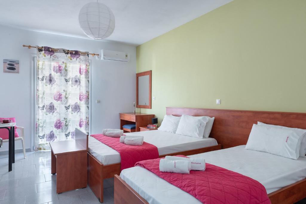 Fiecare unitate include o zonă de relaxare. Camerele de la Socrates Studios au dulap și baie privată.