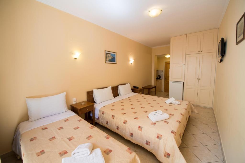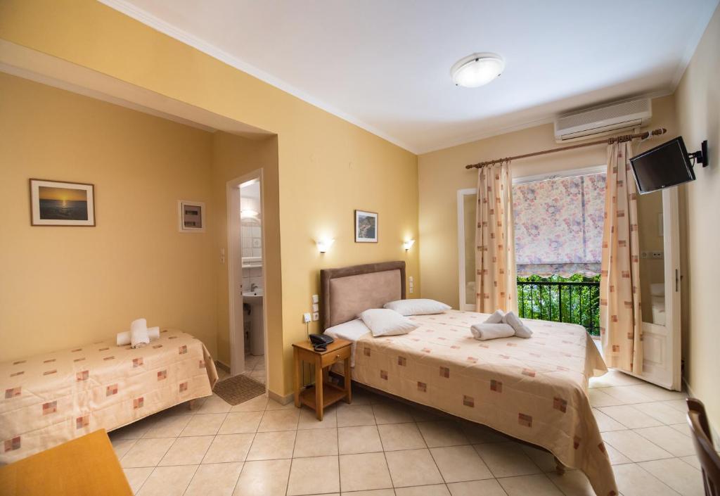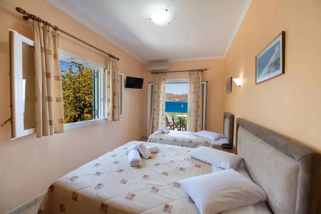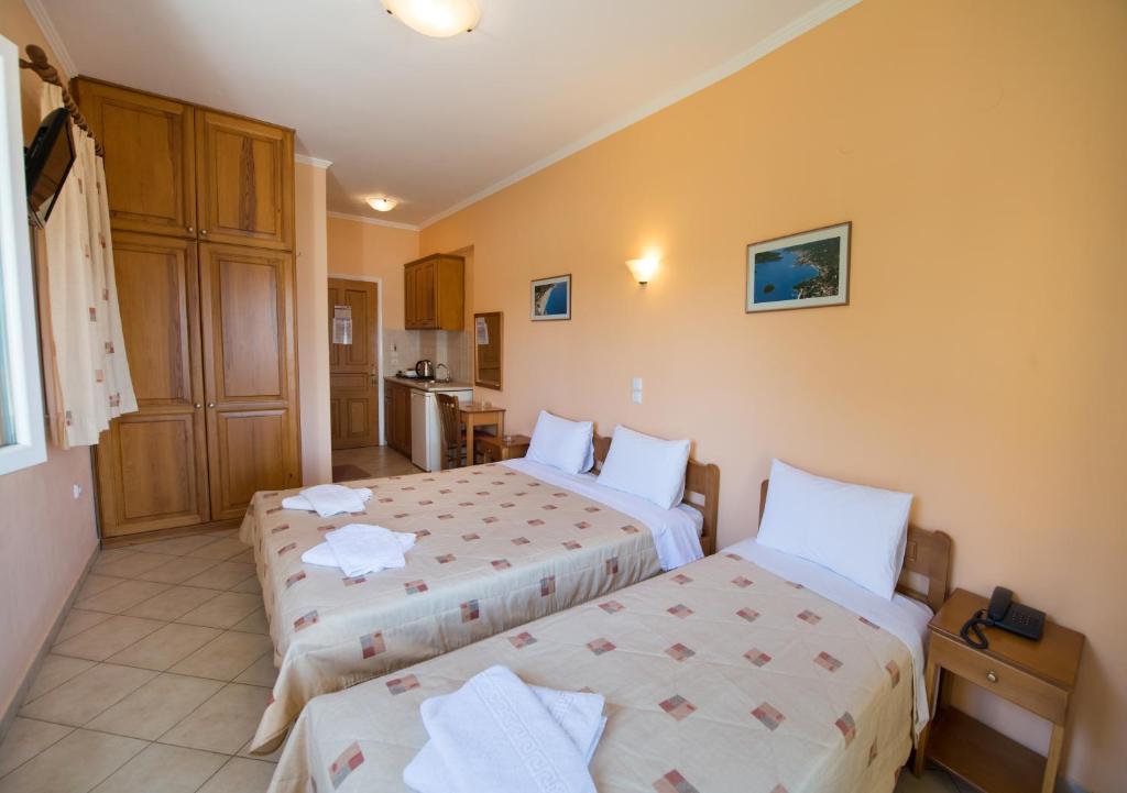 Camerele luminoase și spațioase sunt dotate cu balcoane private, de unde puteți admira priveliștea asupra Mării Ionice sau a grădinii hotelului. Fiecare unitate dispune de aer condiționat, TV cu ecran plat și mini-frigider pentru confortul oaspeților.