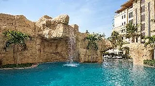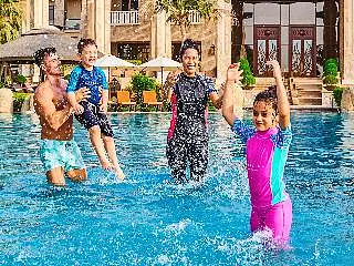 Treat your family to a luxury vacation they'll never forget at the Sofitel Dubai The Palm Luxury Apartments. In 182 deluxe apartments, complete with full kitchen and private balcony, guests enjoy the delights of Sofitel's French hospitality. The five-star Polynesian-style resort features a pristine beach and landscaped pools, perfect for lounging and playing. Kids love the fun atmosphere of the Amura Kids Club, while the adults indulge in a soothing massage and visit to the hammam.