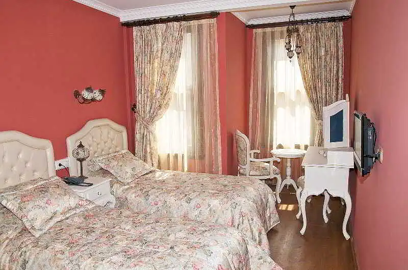 This boutique hotel is ideally located in the mesmerising metropolis of Istanbul. The hotel is perfectly situated in the Sultanahmet district, perfect for travellers who are eager to explore the sights and attractions the city has to offer. The hotel is just a few hundred metres away from the Blue Mosque, Topkapi Palace and St Sophia. Guests will find numerous restaurants, bars, cafes and shops in the nearby vicinity. This delightful hotel occupies one of the citys many historical city houses and has been beautifully restored with a stunning wooden frontal facade, welcoming guests into a world of style and charm. The guest rooms enjoy a homely style with white neo-French Renaissance-style furniture and pretty chintz patterned bed covers and curtains. The guest rooms come complete with modern amenities for visitors convenience.