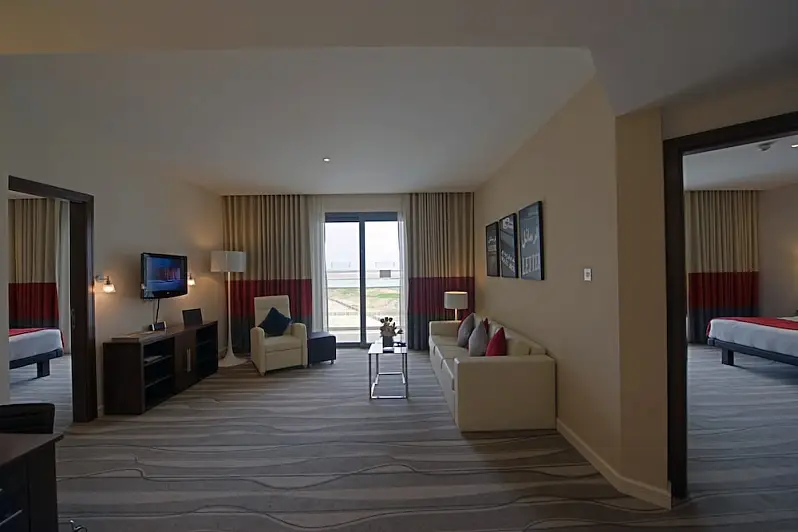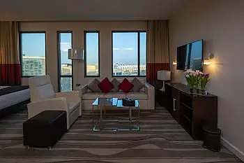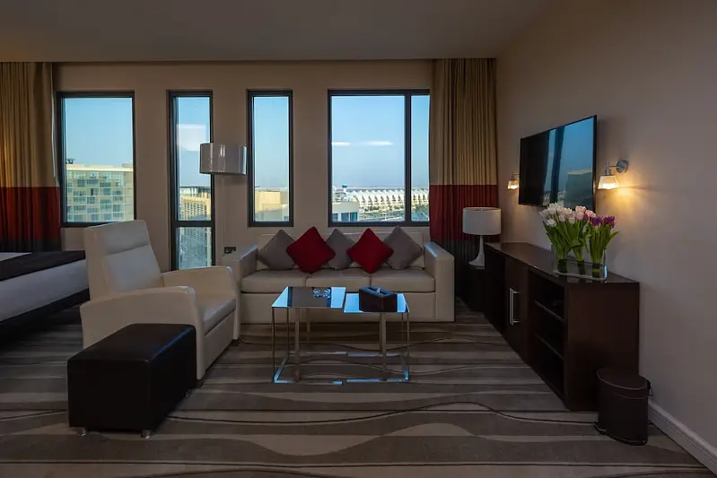 <strong>Property Location</strong><p>With a stay at Staybridge Suites Abu Dhabi Yas Island, an IHG Hotel in Abu Dhabi, you'll be next to a golf course, within a 10-minute drive of Ferrari World and Yas Marina Circuit. This upscale hotel is 2.6 mi (4.1 km) from Warner Bros. World Abu Dhabi and 1.7 mi (2.7 km) from Yas Waterworld.<br> Distances are displayed to the nearest 0.1 mile and kilometer. <br /> <p>Yas Public Beach - 0.8 km / 0.5 mi <br /> Yas Marina Circuit - 1.2 km / 0.7 mi <br /> Yas Marina - 2 km / 1.2 mi <br /> Yas Kartzone - 2.2 km / 1.4 mi <br /> Yas Waterworld - 2.7 km / 1.7 mi <br /> Yas Mall - 3.6 km / 2.2 mi <br /> Ferrari World - 3.7 km / 2.3 mi <br /> Warner Bros. World Abu Dhabi - 4 km / 2.5 mi <br /> Du Arena - 4.4 km / 2.7 mi <br /> Yas Beach - 6.4 km / 3.9 mi <br /> Aldar Headquarter Building - 8.5 km / 5.3 mi <br /> Al Raha Mall - 8.9 km / 5.5 mi <br /> Higher Colleges of Technology-Abu Dhabi Women's College - 9.4 km / 5.9 mi <br /> Al Ghazal Golf Club - 10.5 km / 6.5 mi <br /> Shahama F1 Assembly Point - 16.4 km / 10.2 mi <br /> </p><p>The preferred airport for Staybridge Suites Abu Dhabi Yas Island, an IHG Hotel is Abu Dhabi Intl. Airport (AUH) - 9 km / 5.6 mi </p><br> <strong>Rooms</strong><p>Make yourself at home in one of the 164 air-conditioned rooms featuring kitchens with full-sized refrigerators/freezers and ovens. 32-inch flat-screen televisions with cable programming provide entertainment, while complimentary wireless internet access keeps you connected. Private bathrooms with shower/tub combinations feature deep soaking bathtubs and complimentary toiletries. Conveniences include phones, as well as safes and desks.<p> <strong>Dining</strong><p>Satisfy your appetite at the hotel's coffee shop/cafe, or stay in and take advantage of the 24-hour room service. Mingle with other guests at the complimentary reception, held daily. Unwind at the end of the day with a drink at the beach bar or the poolside bar. A complimentary continental breakfast is served daily from 6:30 AM to 10:30 AM.<p> <strong>Business, Other Amenities</strong> <p>Featured amenities include a 24-hour business center, express check-in, and dry cleaning/laundry services. A roundtrip airport shuttle is provided for a surcharge (available 24 hours), and free valet parking is available onsite.<p>