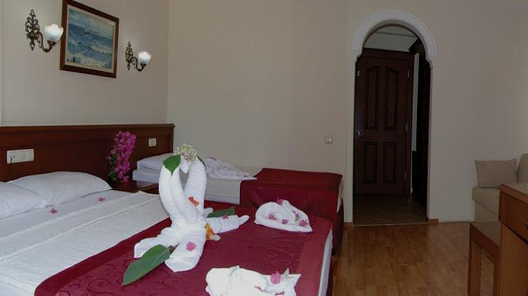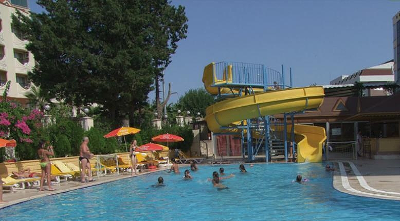 HOTEL: Este hotel cuenta con baño turco, una sauna, un gimnasio, una piscina con tobogán, un restaurante tipo bufet y un bar. SITUACIÓN: Este hotel, está en Camyuva, está situado en Kemer, a 7 km del establecimiento los clientes pueden encontrar el centro de la ciudad. Se sitúa a 200 metros de la estación de autobuses. A 80 km podrá encontrar el aeropuerto de Antalya. Está situado a unos 300 metros de una playa privada. HABITACIÓN: Las habitaciones tienen aire acondicionado, televisión vía satélite, minibar y balcón.