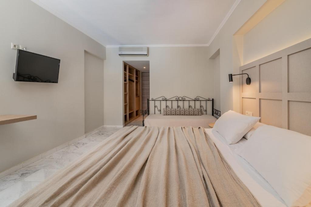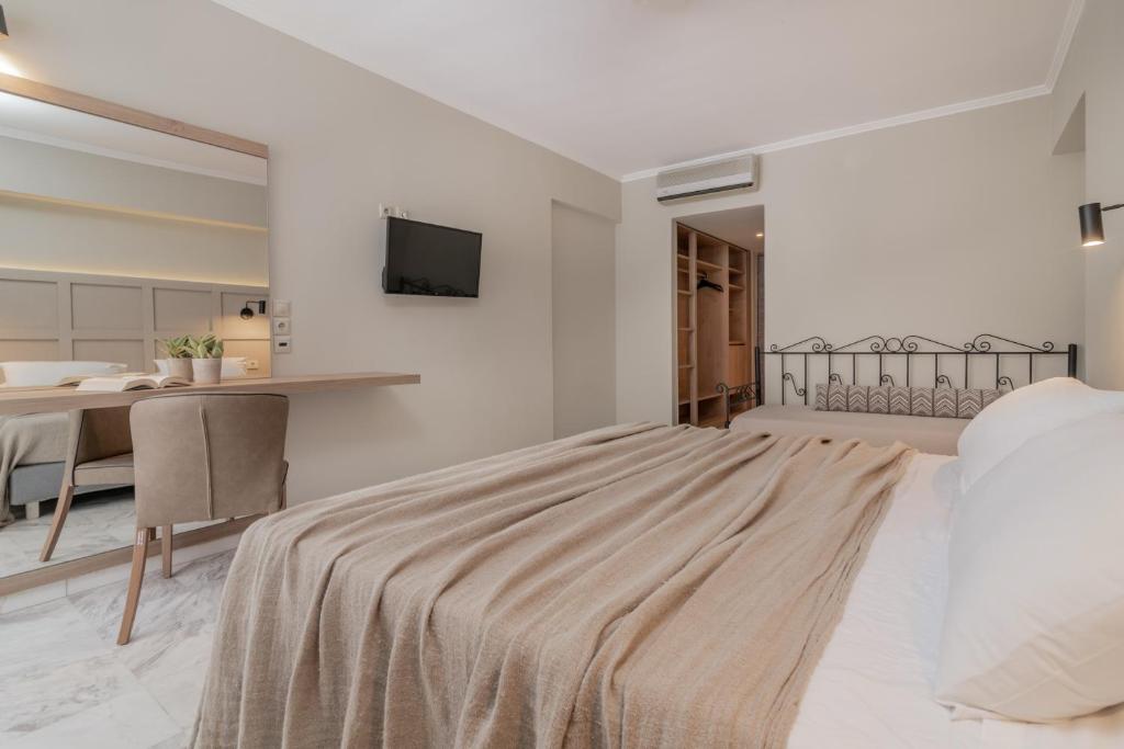 Amenajate cu paturi din fier forjat si pardoseală cu gresie, camerele dotate cu aer conditionat ale hotelului Strofades au un balcon cu vedere la mare, la piscină sau la grădină. Fiecare cameră oferă o zonă de relaxare si o baie cu dus sau cadă. Facilitătile includ un TV, un seif si un frigider.