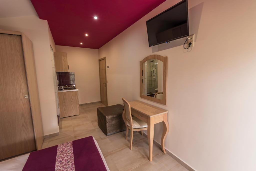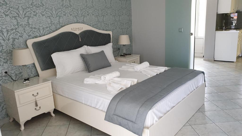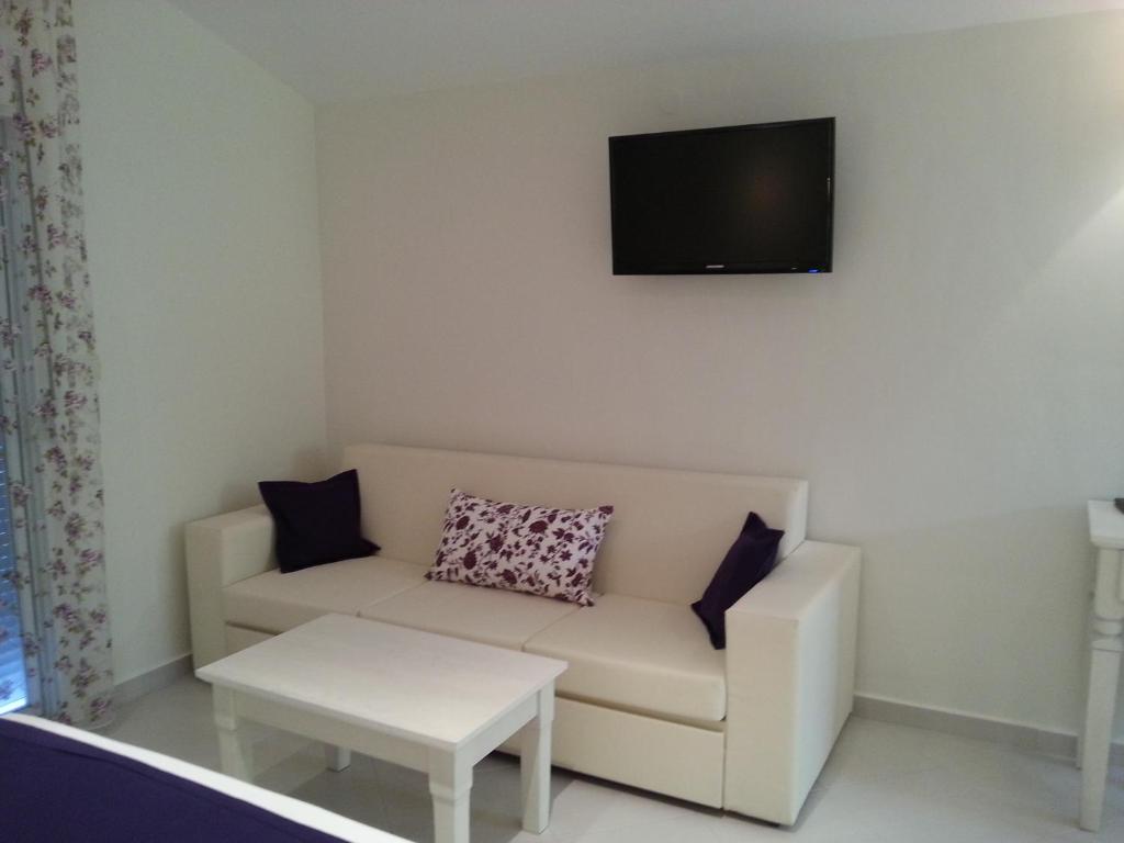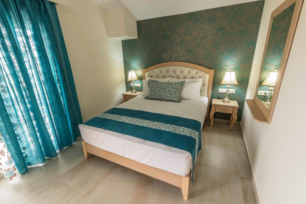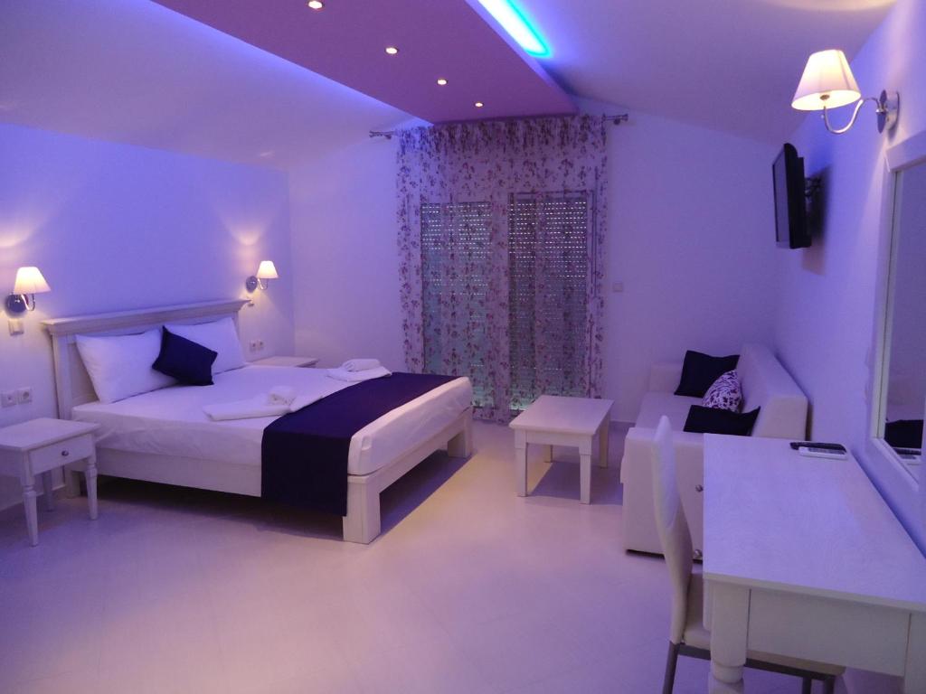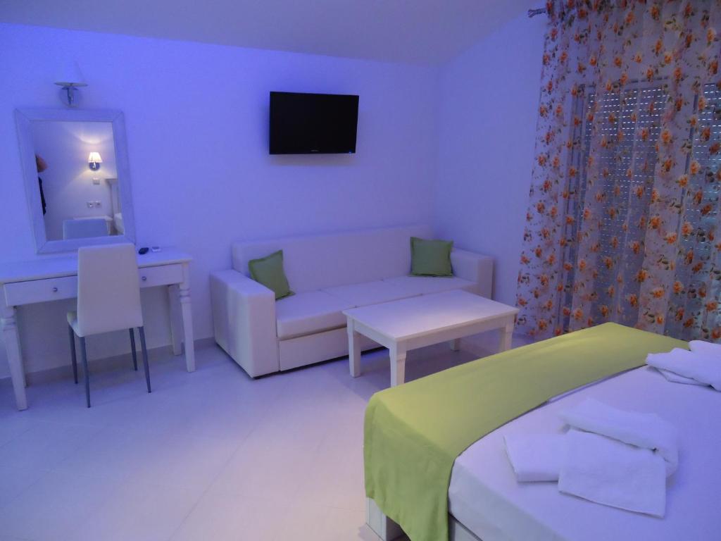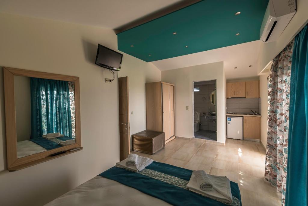 Camerele sunt dotate cu chicinetă complet utilată, aer condiționat, TV și balcon sau terasă unde puteți savura micul dejun in atmosfera mediteraneană. Grădina ingrijită cu măslini și flori colorate creează un cadru perfect pentru momentele de relaxare.