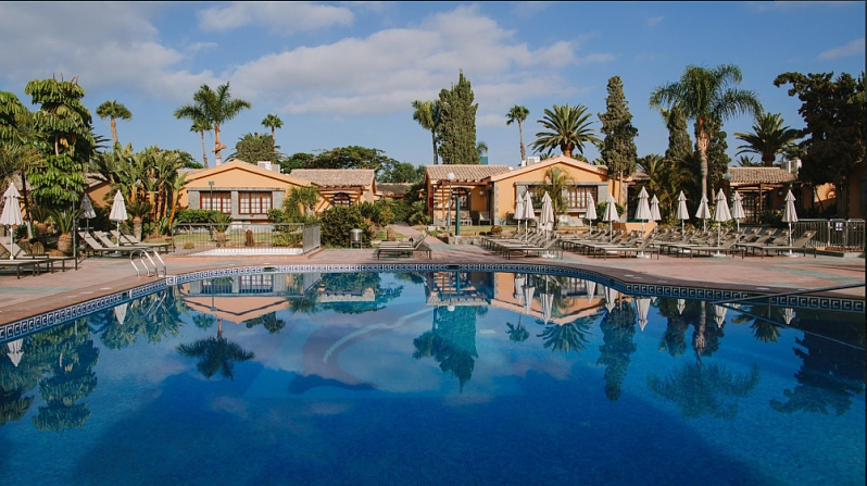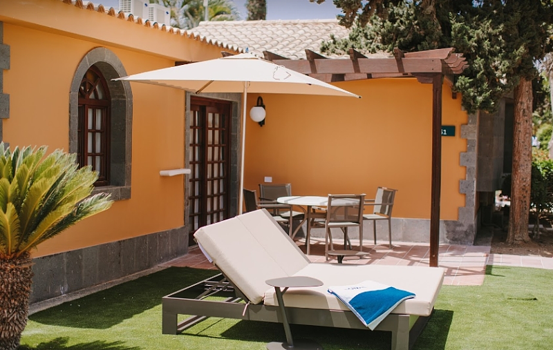 The Hotel Suites & Villas By Dunas, in the Campo Internacional de Maspalomas is surrounded by a large subtropical garden of 75,000 m2 that make itin a unique establishment in Gran Canaria. The establishment has a variety of outdoor swimming pools surrounded by solariums that allow you to combine entertainment areas and activities forChildren with others of great tranquility for adults surrounded by vegetation. It also offers rooms equipped with air conditioning and a terrace. Free bus service to Maspalomas beach 4times a day. Splash zone for children and new Cycle tourism center.The accommodations at Suites & Villas by Dunas are tastefully decorated and include a lounge area with satellite TV and a garden terrace. There is also free Wi-Fi throughout.The buffet restaurant features a different daily themed decoration. There is also a poolside bar and a lobby bar.In addition, Suites & Villas by Dunas has a fitness center, a water park and a kids club. Animation program for children is offered. Some rooms include a terrace with direct access to the water park.