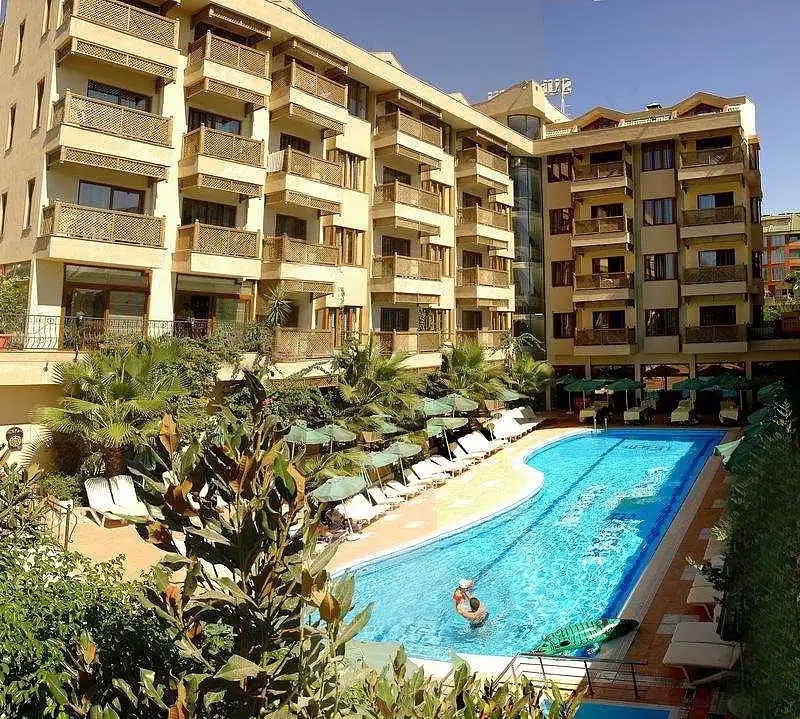 Located in a great spot, just a short walk from the Sides west beach, the Roman/Hellenistic ruins and the resort centre, this pleasant accommodation is placed in the immediate vicinity of many restaurants and café bars. Each cosy apartment is comfortably furnished with a double bed, a sofa bed and a well-equipped kitchenette. They all have partial views to the sea, the countryside or the on-site pools. Travellers can choose from two outdoor swimming pools, a sauna and a Turkish bath as well as a private section of the local beach with sunbeds and umbrellas laid out ready for the hotels guests.