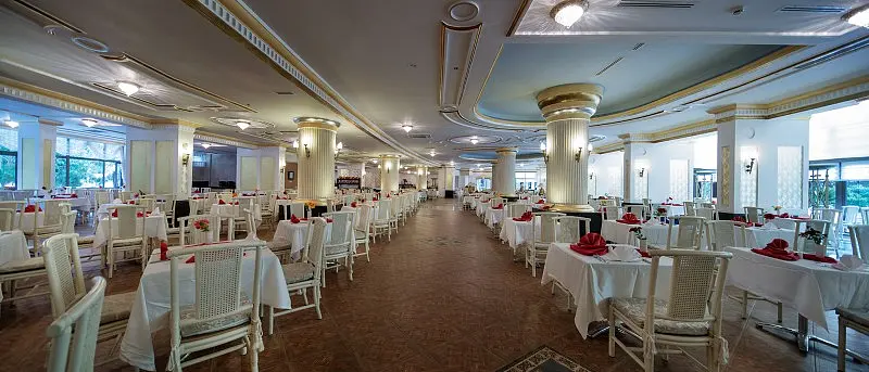 Hotelul dispune de facilitati precum: restaurant principal si A la carte, 8 baruri, piscina exterioara, piscina interioara, amfiteatru, cabinet medical, centru SPA, spalatorie, baie turceasca, sauna, terenuri de tenis, program de animatie, muzica live, acces la internet in lobby WiFi, masaj, piscina si loc de joaca pentru copii, mini club.Plaja este proprie, de nisip. Umbrelutele, sezlongurile si prosoapele sunt gratuite la plaja si la piscina hotelului.