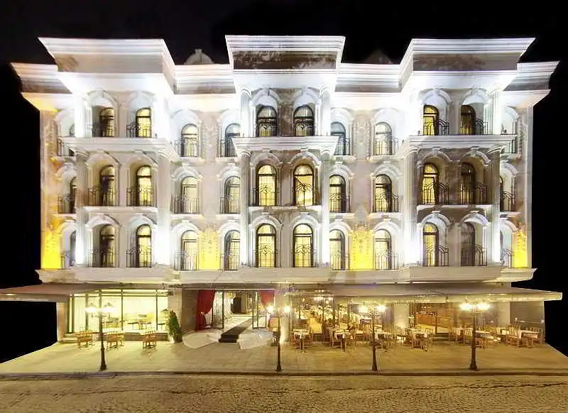 This elegant design hotel is located in the centre of the Sultanahmet district, the historic heart of the city of Istanbul. The most famous attractions such as Hagia Sophia, Topkapi Palace, Blue Mosque, Grand Bazaar, Hippodrome or Spice Market are all just minutes away and easily reachable. A tram stop is in the direct vicinity of the hotel, the nearest airport is Istanbuls Atatürk International.