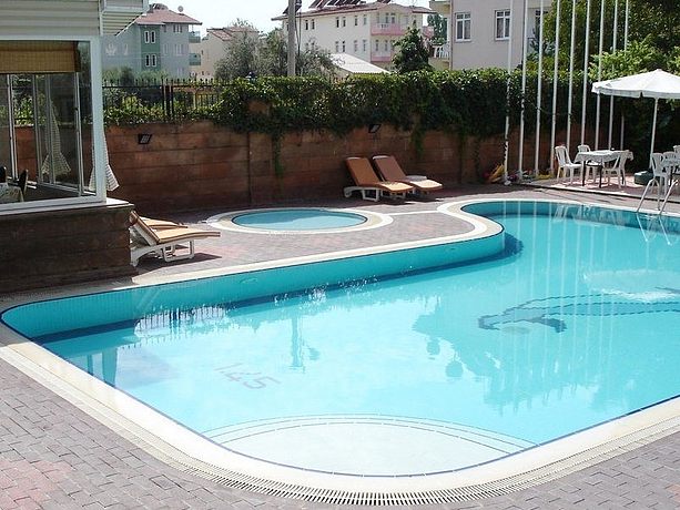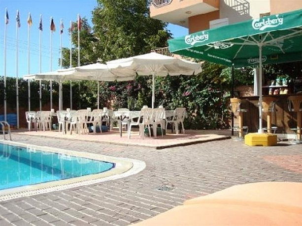 HOTEL: Este hotel se construyó en 2004, cuenta con 25 habitaciones, 7 habitaciones individuales, 12 habitaciones dobles y 6 suites. SITUACIÓN: Este hotel, está en Side, está situado en el centro de la ciudad. En las cercanías los clientes pueden encontrar la estación de autobuses, la estación de tren, el transporte público, la playa y el puerto.