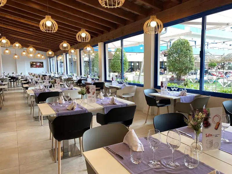 Restaurantul principal al hotelului ofera mese tip bufet si o varietate de mancaruri catalane. Oaspetii pot savura o bautura sau o gustare la cafe-barul hotelului, cu vedere spre Marea Mediterana.