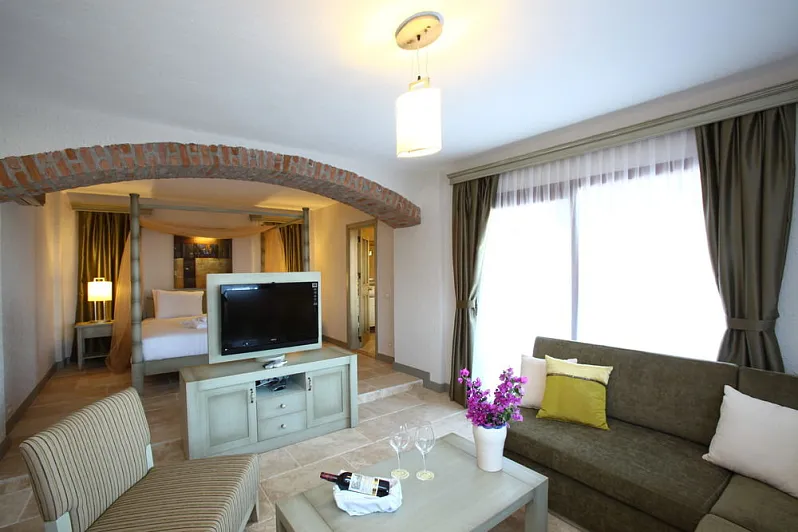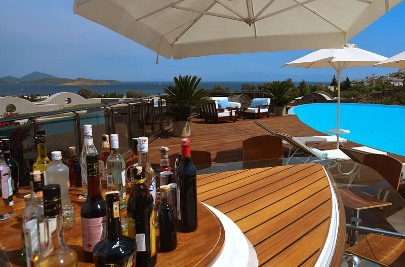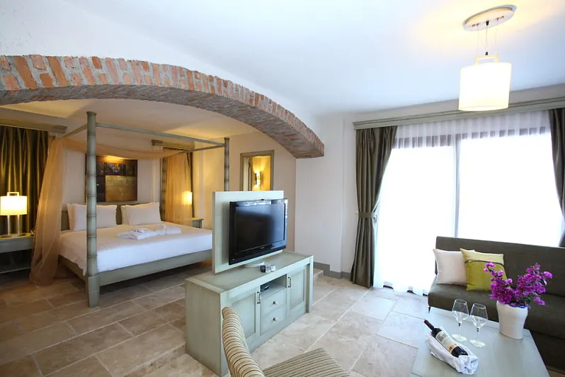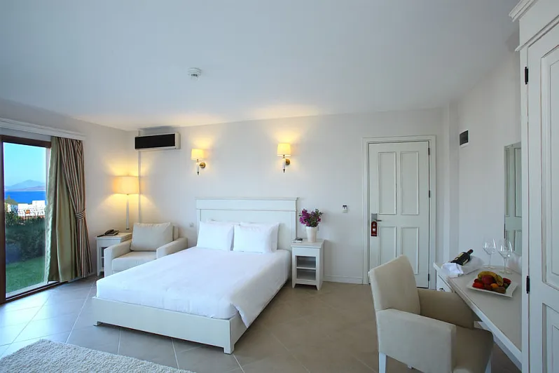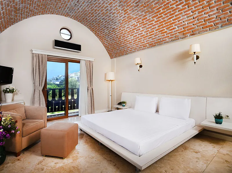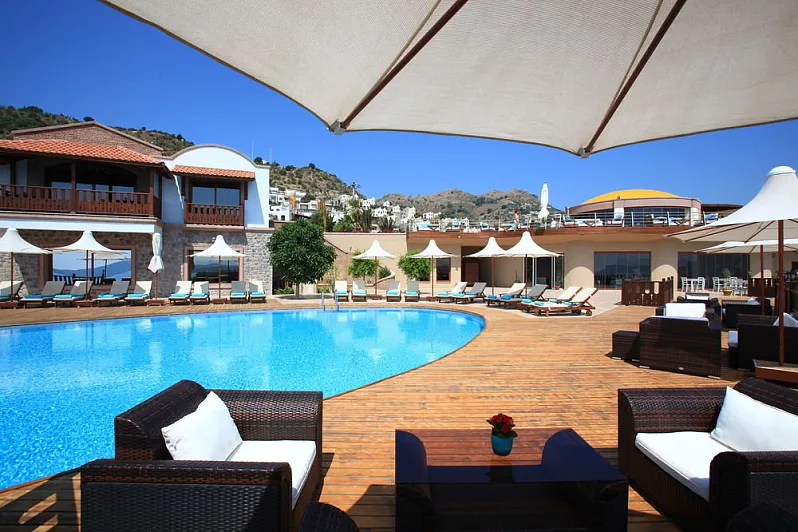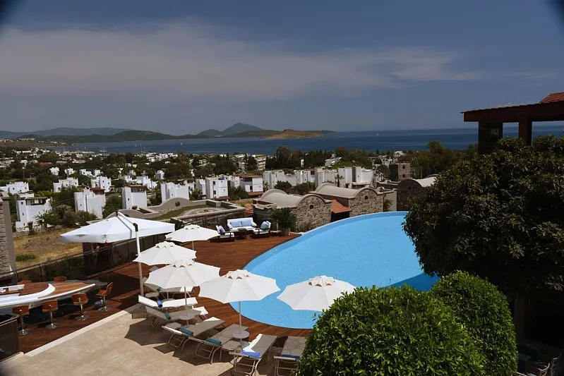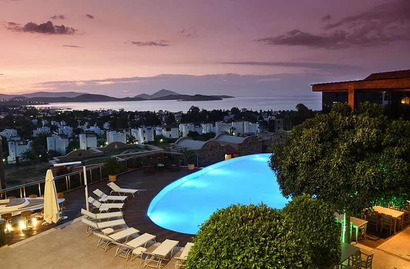 This boutique hotel is situated in the Ortakent-Yahsi area of the Bodrum Peninsula in Turkey. The hotel basks in its elevated position, commanding spectacular views over the Aegean Sea. The beach at Yahsi Bay, where guests can find an abundance of restaurants and shops, is just 300 metres away from the hotel. The cosmopolitan resort of Bodrum, and other charming towns on the peninsula are just a few minutes away from the hotel. Guests will find themselves in the ideal setting in which to relax and unwind, or to explore the exciting attractions the area has to offer, including Bodrum Castle and the Museum of Underwater Archaeology. This delightful hotel comprises of 6 blocks, and enjoys an attractive architectural style, built with natural stone and wooden decorative features. The glorious guest rooms have been superbly designed for guests' comfort.