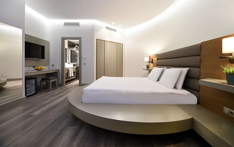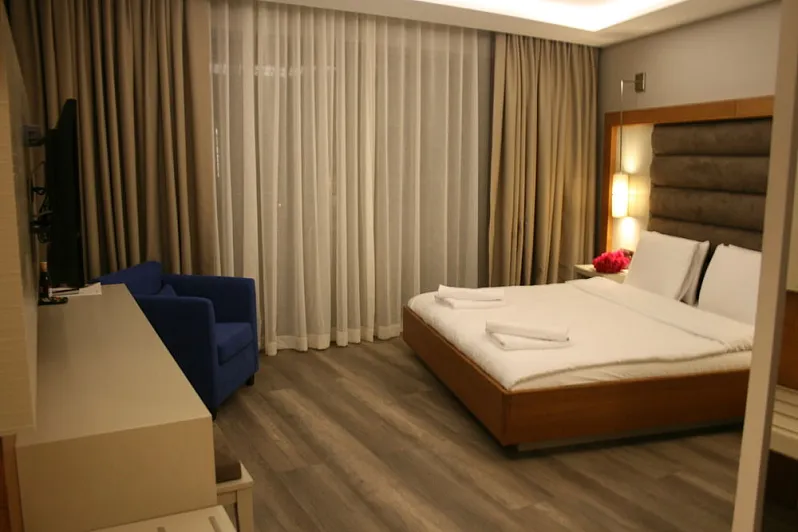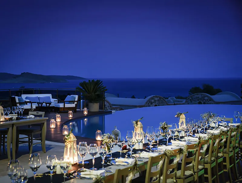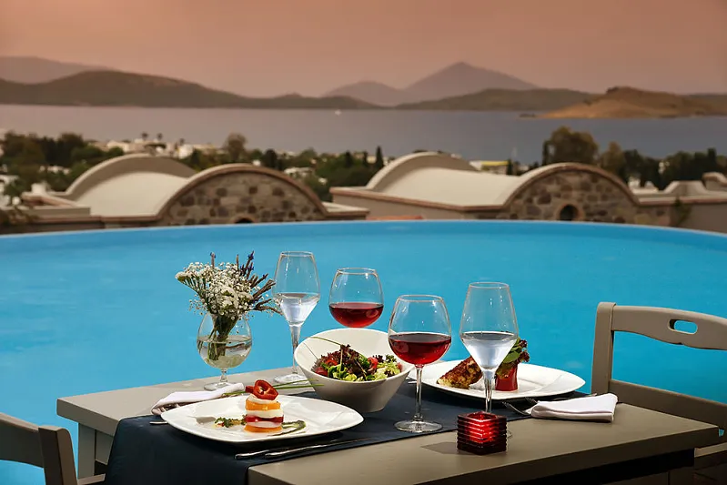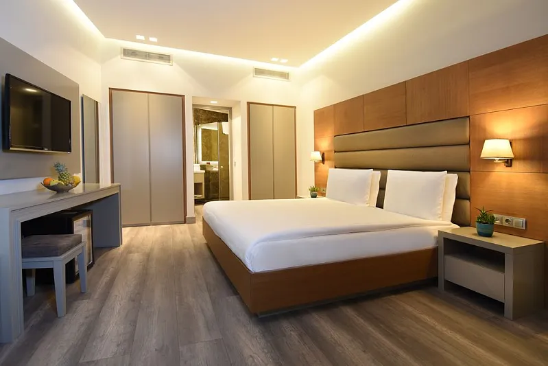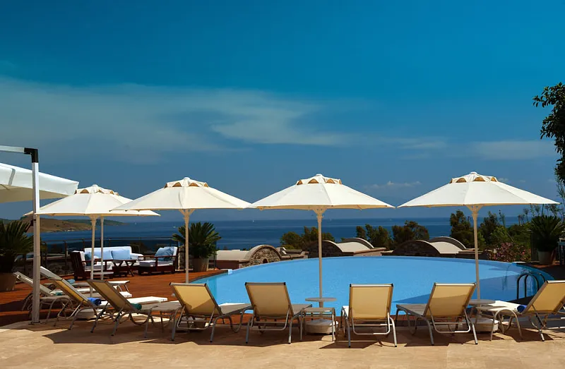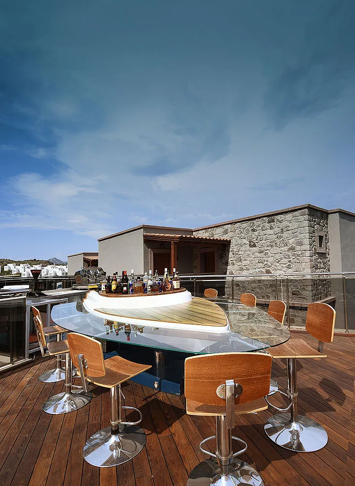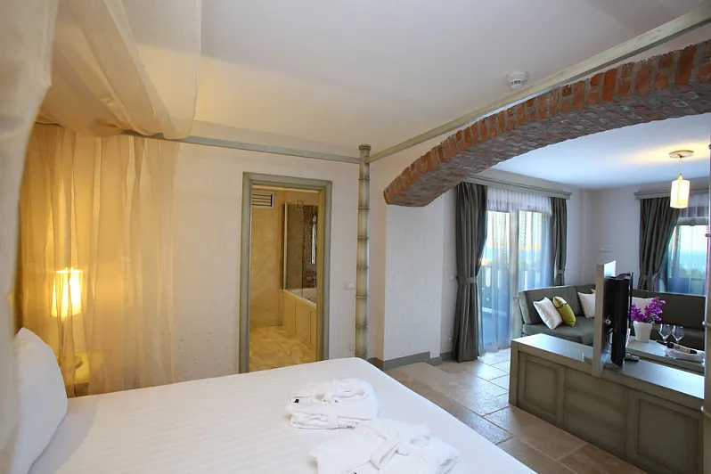 This boutique hotel is situated in the Ortakent-Yahsi area of the Bodrum Peninsula in Turkey. The hotel basks in its elevated position, commanding spectacular views over the Aegean Sea. The beach at Yahsi Bay, where guests can find an abundance of restaurants and shops, is just 300 metres away from the hotel. The cosmopolitan resort of Bodrum, and other charming towns on the peninsula are just a few minutes away from the hotel. Guests will find themselves in the ideal setting in which to relax and unwind, or to explore the exciting attractions the area has to offer, including Bodrum Castle and the Museum of Underwater Archaeology. This delightful hotel comprises of 6 blocks, and enjoys an attractive architectural style, built with natural stone and wooden decorative features. The glorious guest rooms have been superbly designed for guests' comfort.