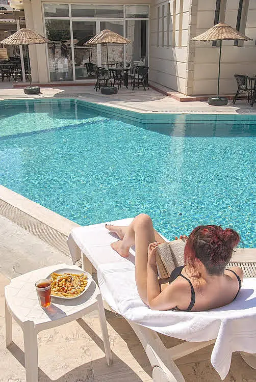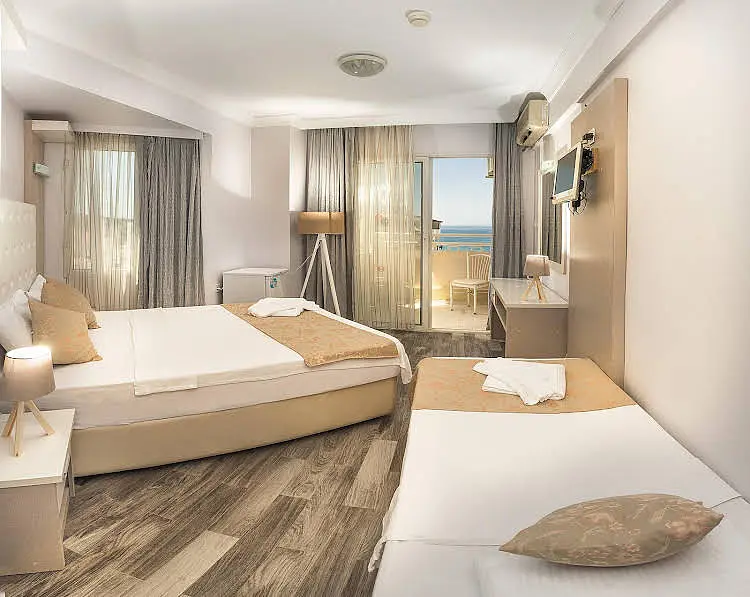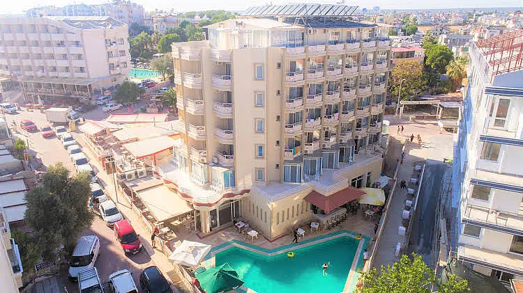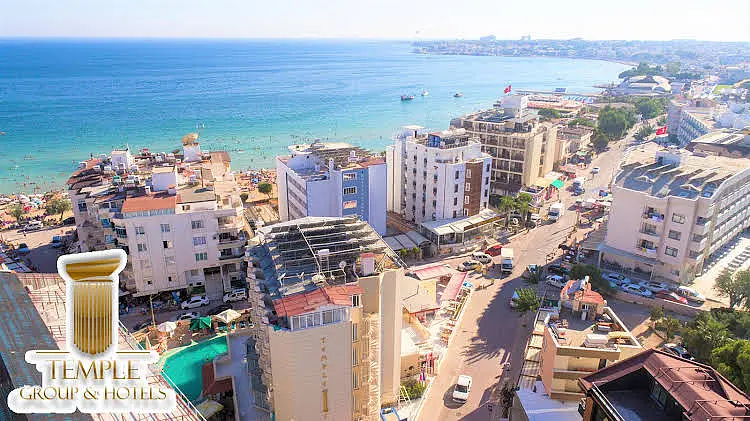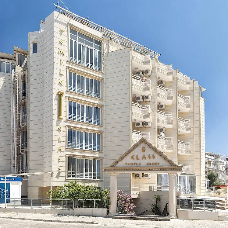 Birinci sınıf bir ağırlanma için... Temple Class Hotel Didim’de hizmet vermektedir. Altınkum Plajı’na 2 dakika yürüme mesafesinde olan otel 70 oda kapasitelidir. Tesiste açık yüzme havuzu ve çocuk havuzu vardır. Lezzetli sabah kahvaltılarının ve akşam yemeklerinin sunulduğu otelde WIFI hizmeti de sağlanmaktadır. Otel, Didim Altınkum’da hizmet vermektedir. Didim merkez 3 km,Apollon Tapınağı 4 km,İzmir Havaalanı 150 Km,Bodrum Havaalanı 90 Km. Denize Yakın Konum - Wİ-Fİ - Cocuk Dostu OtelHavuz ve Plaj Olanakları:Otelde açık yüzme havuzu ve çocuk havuzu bulunmaktadır. Ayrıca tesis denize 30 metre uzaklıktadır.AktivitelerSpor Salonu - Sauna - Jakuzi.Cocuk/BebekTesiste çocuklar için çocuk yüzme havuzu bulunmaktadır.Konsept:Her Sey Dahil ve Alkolsüz Her Sey DahilHer Sey Dahil:Konaklama bedeline sabah kahvaltısı, öğle yemeği, akşam yemeğinin yanı sıra alkollü ve alkolsüz içeceklerin dahil olduğu konsepttir. Alkolsüz Her Sey Dahil:Konaklama bedeline sabah kahvaltısı, öğle yemeği, akşam yemeğinin yanında yalnızca alkolsüz içeceklerin dahil olduğu konsepttir. Alkollü içecekler ekstra ücretlendirilir. Ayrıca otellere göre farklılık göstermekle birlikte dondurma, snack büfe, fast food büfe, beş çayı gibi pek çok ara öğün de ücretsiz olarak sunulur.Hizmet Saatleri:08.00-10.00 Kahvaltı Açık Büfe12.30-14.00 Öğle Yemeği Açık Büfe16.00-17.00 Snack Servis 19.30-21.30 Akşam Yemeği Açık Büfe11.00-22.30 İçecekler Self Servis Ücretsiz Hizmetler:Kapalı - Açık Restaurant - Cocuk Havuzu - Yüzme Havuzu - Spor Salonu - Sauna - Jakuzi. Otel 70 oda bulunmaktadır. Odalarda; Seramik veya Laminant Kaplı Zemin, Klima, Saç Kurutma Makinesi, Uydu Yayinli TV, Kablosuz İnternet, Telefon ve Buzdolabı bulunmaktadır.
