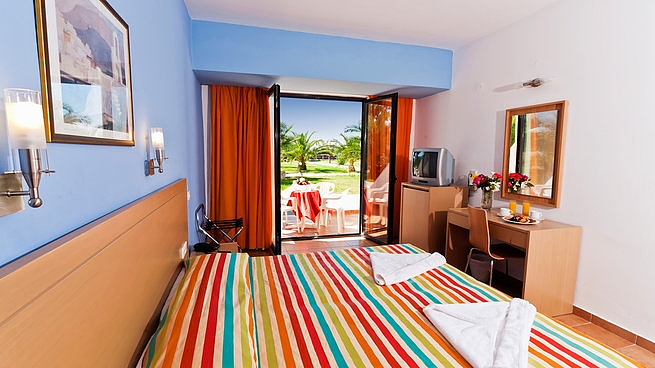 aer conditionat, frigider, seif, televizor, baie cu WC, telefon linie directa, balcon sau veranda cu vedere spre mare, gradina sau munte.