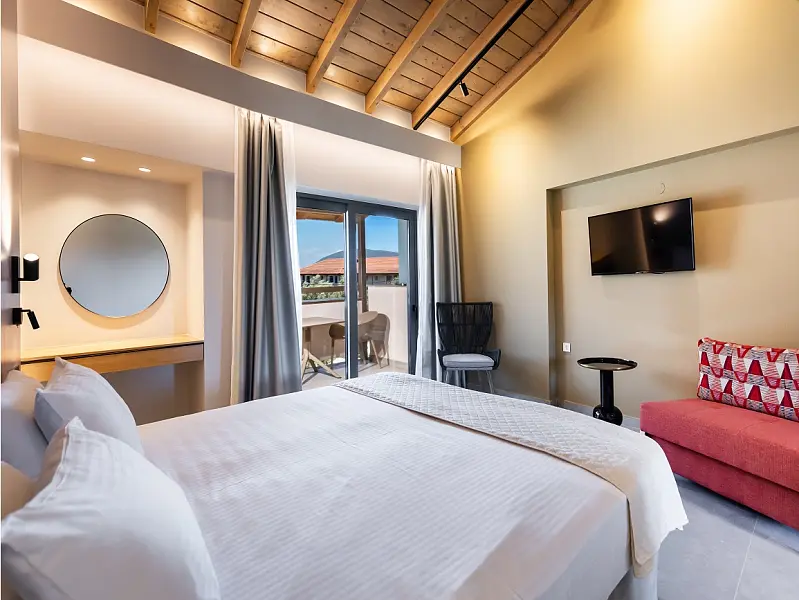All rooms in the newly built building are modern and the decoration is tottally inspired by the traditional culture of Lefkada Island. They have air conditioning and they feature a balcony. It is the ideal choice for couples and families.