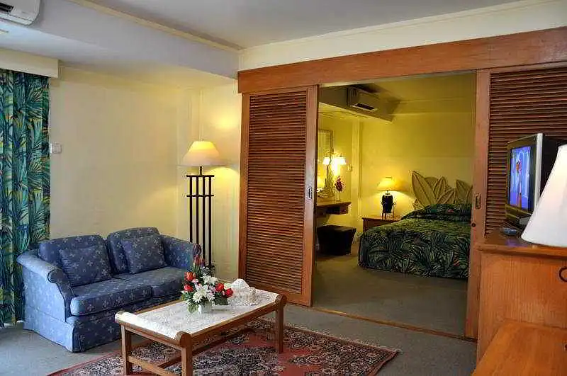 This air-conditioned beach hotel has a total of 192 well furnished rooms. Guests are welcomed by a lobby where they may make use of the hotel safe. For business travellers, there are 3 conference rooms fitted with the latest audio-visual equipment. Additional communal spaces include the café and restaurant. Room service and (for a fee) a laundry service are provided.