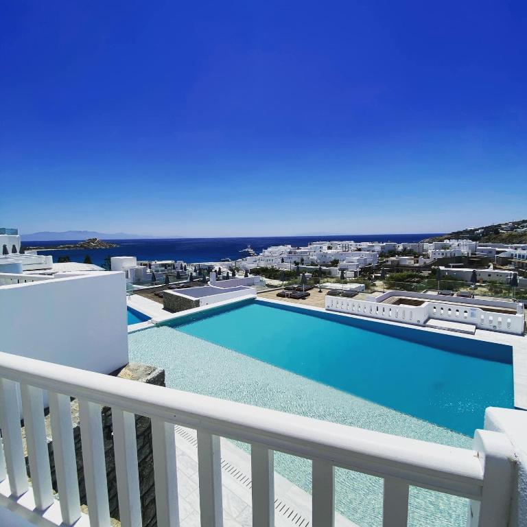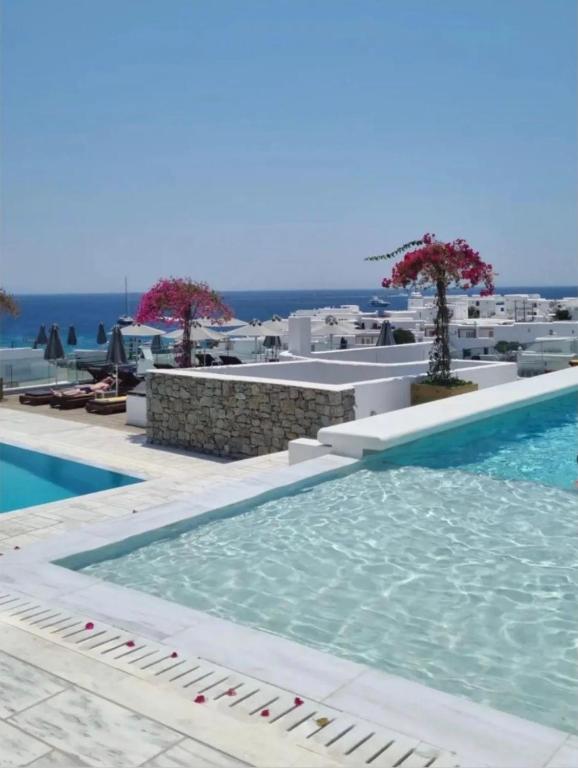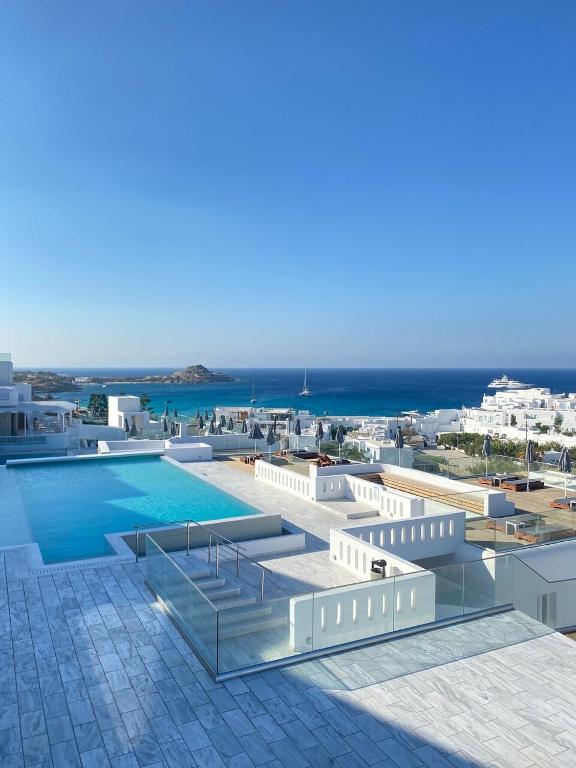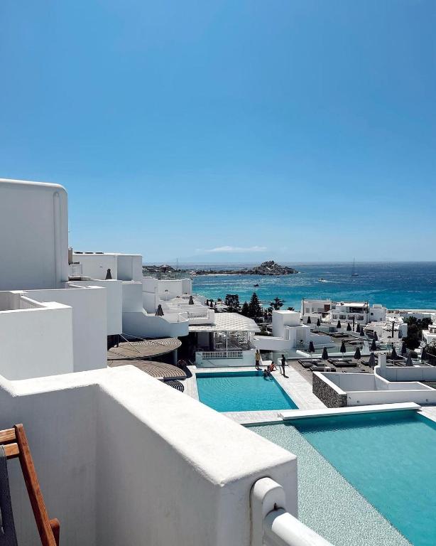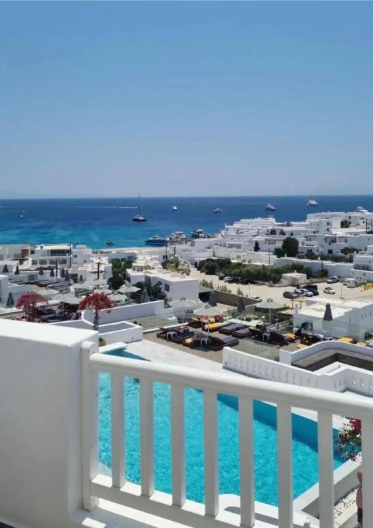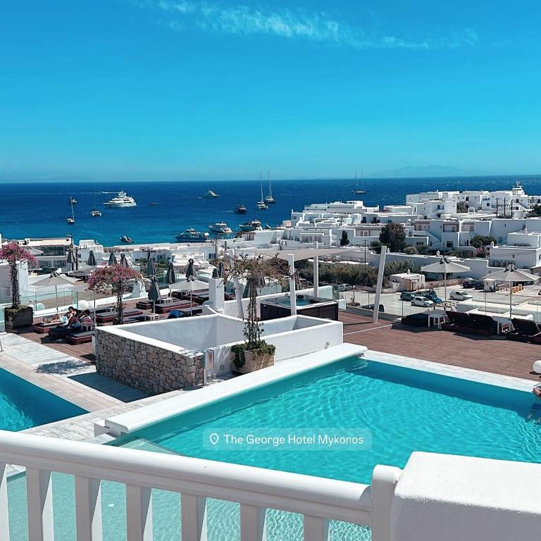 The George Hotel Mykonos se află in satul Platis Yalos și oferă o piscină in aer liber și un snack bar. Include unități de cazare cu aer condiționat, cu vedere directă sau laterală la Marea Egee. Accesul la conexiunea WiFi este disponibil gratuit in toate zonele.