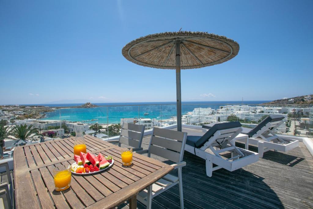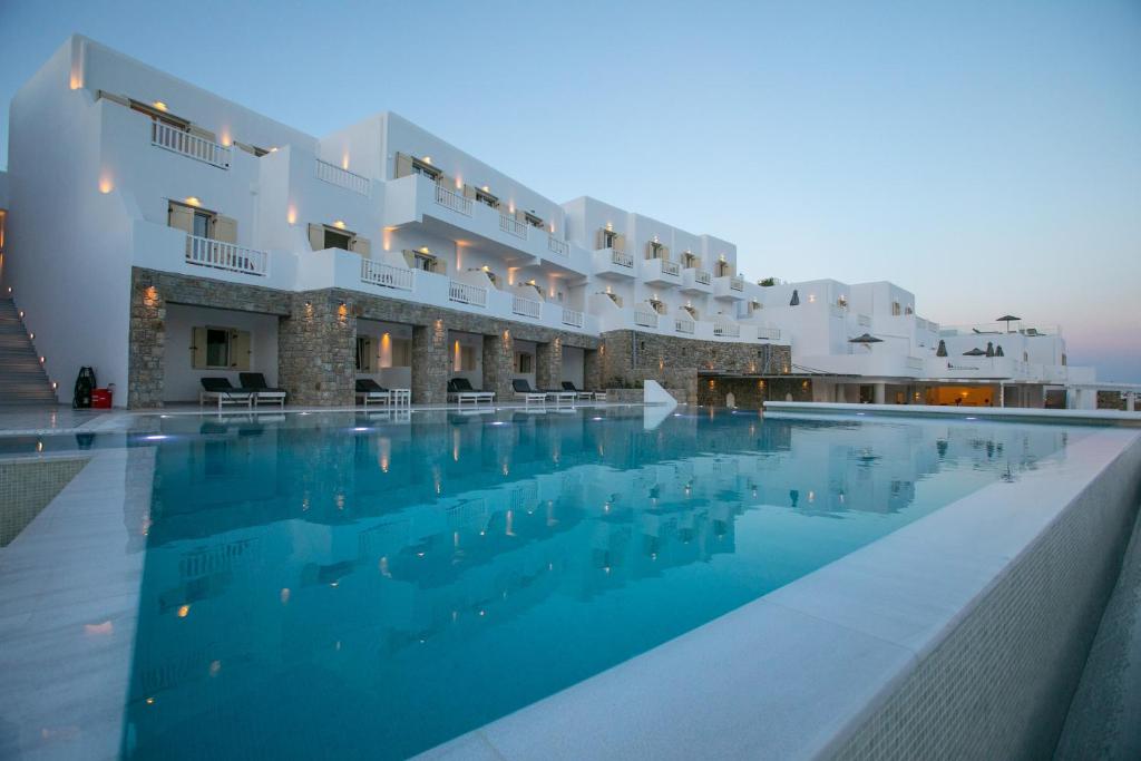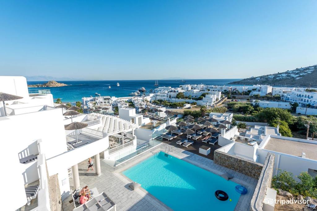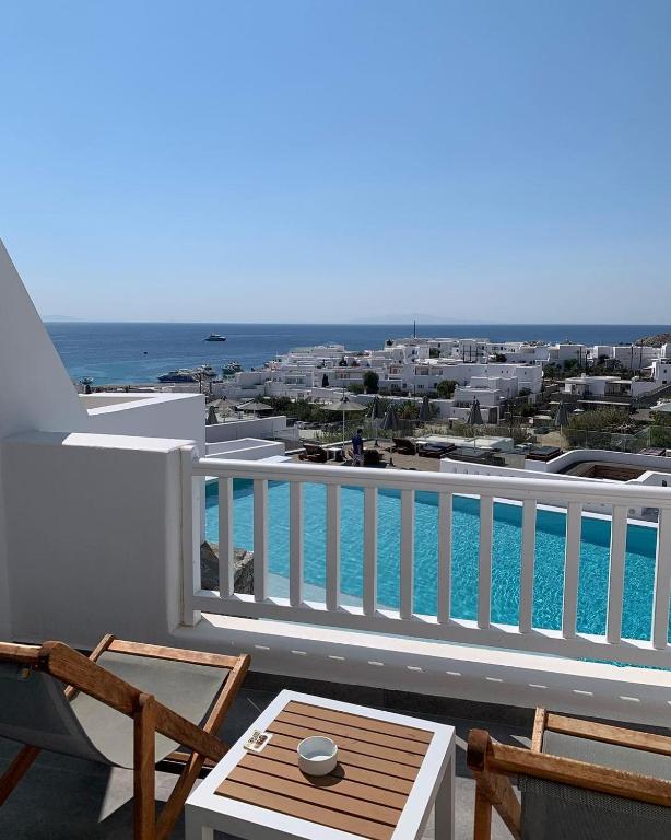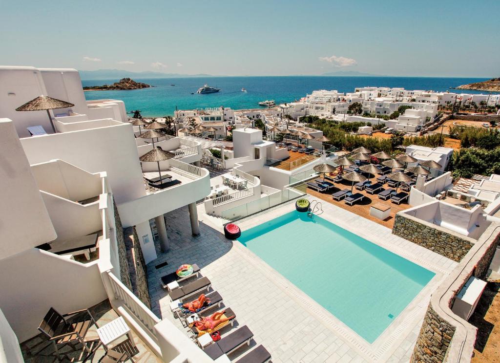 The George Hotel Mykonos se află in satul Platis Yalos și oferă o piscină in aer liber și un snack bar. Include unități de cazare cu aer condiționat, cu vedere directă sau laterală la Marea Egee. Accesul la conexiunea WiFi este disponibil gratuit in toate zonele.