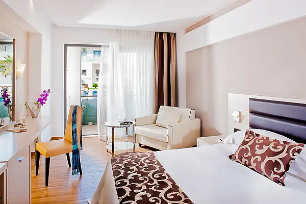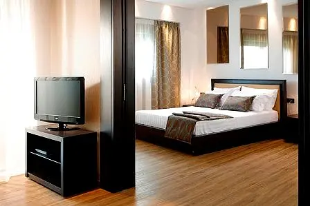 aer conditionat (gratuit), seif (gratuit), TV LCD, DVD/CD player, telefon, radio, facilitati pentru prepararea cafelei si a ceaiului, minibar (se platesc doar produsele consumate), cada, uscator de par, halat de baie si papuci,balcon.