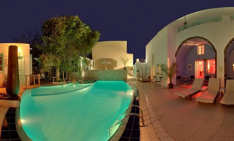 In the village of Oia on Santorini you will find The Museum Spa Wellness Hotel, featuring a charming pool and garden. Most of the studios and suites have private terraces with views over the Caldera, the Aegean Sea, the pool or the garden. All units are generously equipped with air conditioning, satellite TV, safe and hairdryer. After a dip in the pool, guests can relax by two of the oldest olive trees on the island. Continental breakfast is served in the morning. For a small fee, you can enjoy the Spa services. Guests can choose between massages, aromatherapy, facials and various other therapeutic treatments.