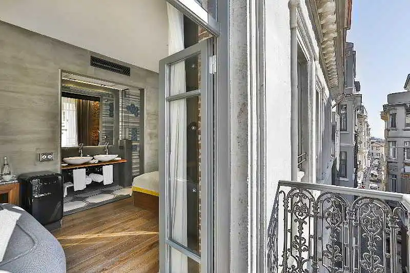 Located between the historical buildings of Beyoglu and around the corner from Istiklal Street, this boutique-styled hotel, has a neo-classical, art nouveau style and consists of 52 high-ceilinged rooms centred around a large courtyard or inner garden. At the turn of the 20th century the building housed the Serbian Consulate; now it has been restored to a stylish hotel with an environmentally friendly concept. The rooms are decorated in a Retro style with SMEG 50s series mini bars, luxury imported furnishings and LOccitane toiletries. Surrounded by cafe bars, trendy shops and entertainment venues, this hotel is in the heart of Istanbul, just 550m from Taksim Square where there are links to public transport.