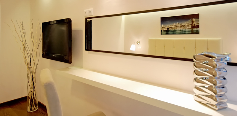 A/C individual, internet WIFI gratuit, TV satelit 32', seif (la cerere, contra cost), mini-bar (la cerere, contra cost), telefon direct (contra cost),uscator de par, cosmetice baie, halat si papuci, balcon cu mobilier, culori dulci, pastelate, design modern si eleganta sunt cuvintele cheie ce caracterizeaza camerele acestui boutique hotel.