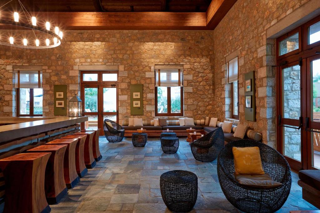 Inspirate din vechile conace din Messinia, vilele complexului sunt construite din piatră naturală și au elemente de design local, in perfectă armonie cu plajele virgine cu nisip și dealurile pitorești.