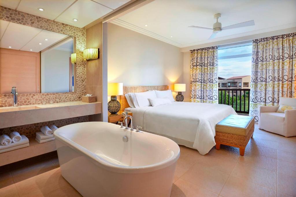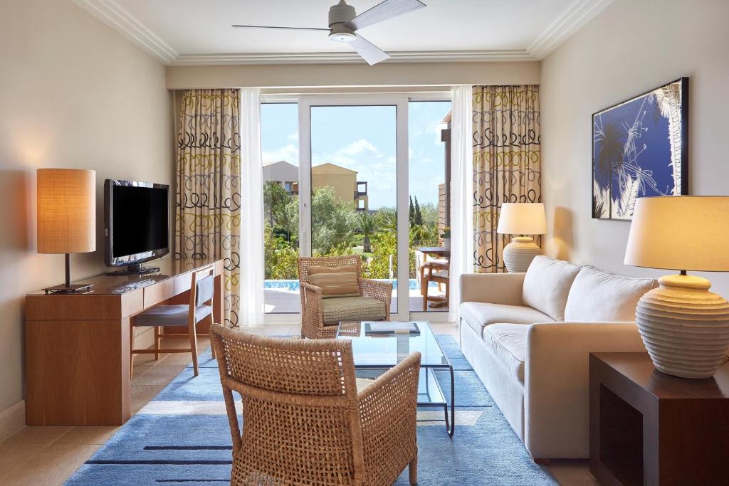 Westin Resort se află in Messinia, intr-o locație idilică pe malul mării, și oferă un centru spa de hidroterapie, un teren de golf și 123 de piscine infinite private. Pune la dispoziție camere elegante cu TV cu ecran plat.