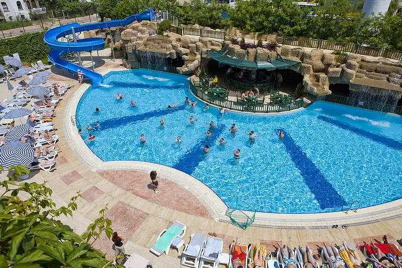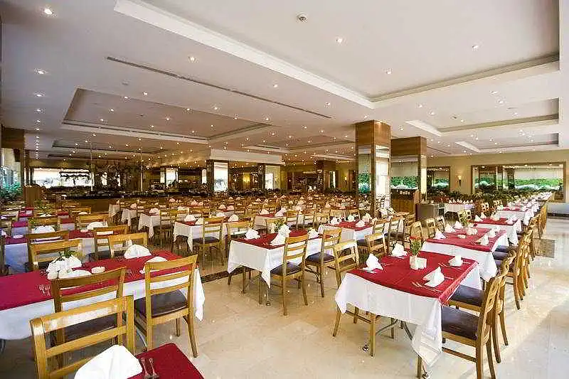 This family friendly beach hotel comprises a total of 211 standard rooms spread over 6 floors. Facilities on offer to guests at this air-conditioned establishment include a lobby area with a 24-hour reception and check-out service, a hotel safe, a currency exchange facility, 2 lifts, a cafe and a mini supermarket. It also offers a hairdressing salon, a nightclub, a theatre auditorium, a TV lounge and a restaurant as well as conference facilities. Guests may take advantage of the WLAN Internet access and the room and laundry services (both for an additional fee). Parking is available for those arriving by car and the younger guests will enjoy the childrens playground and the kids club.