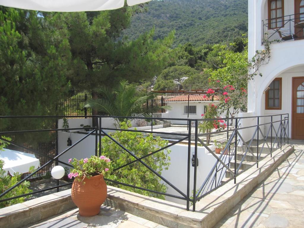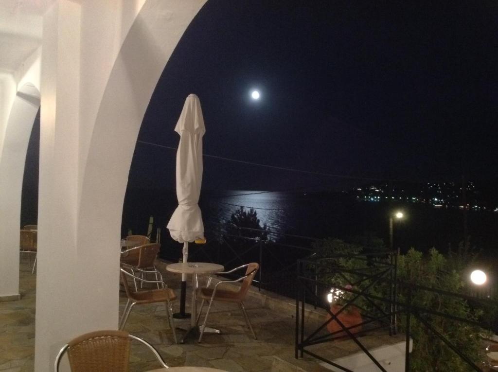 Studiourile de la Travlos au chicinetă cu frigider si toate sunt dotate cu aer conditionat si un TV. Balcoanele au vedere la mare sau la munti.
