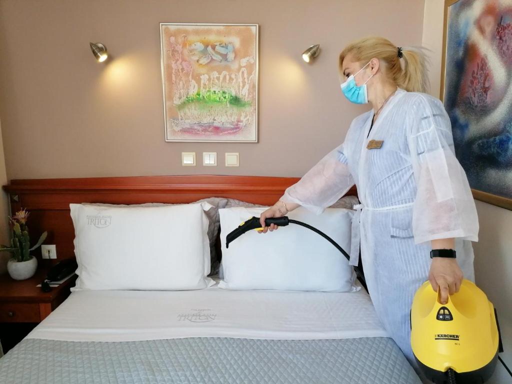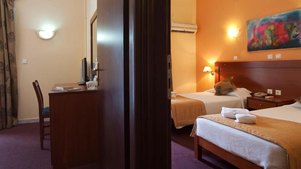 Toate camerele de la Triton sunt dotate cu aer condiționat și TV cu ecran plat cu canale prin satelit. Acestea au, de asemenea, o baie cu articole de toaletă gratuite, iar cele mai multe se deschid spre un balcon cu vedere la port.