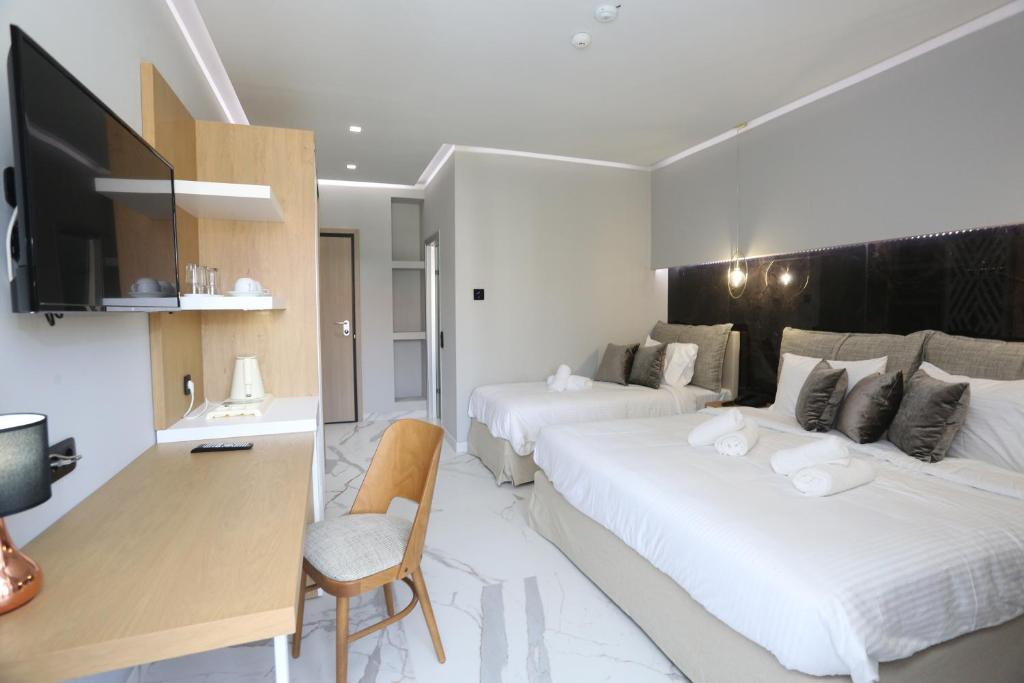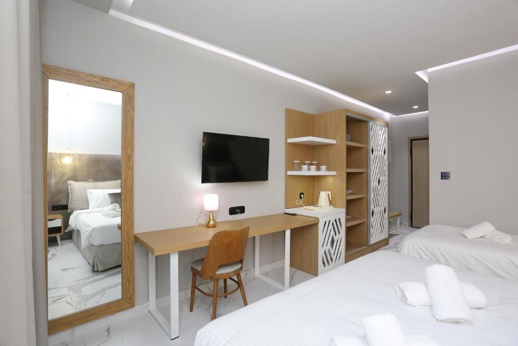 Camerele sunt decorate in nuanțe mediteraneene și sunt dotate cu aer condiționat, TV prin satelit, mini-frigider și balcon. Pentru relaxare, oaspeții au la dispoziție o piscină exterioară inconjurată de șezlonguri și umbrele, precum și un snack bar care servește băuturi răcoritoare și gustări pe tot parcursul zilei.