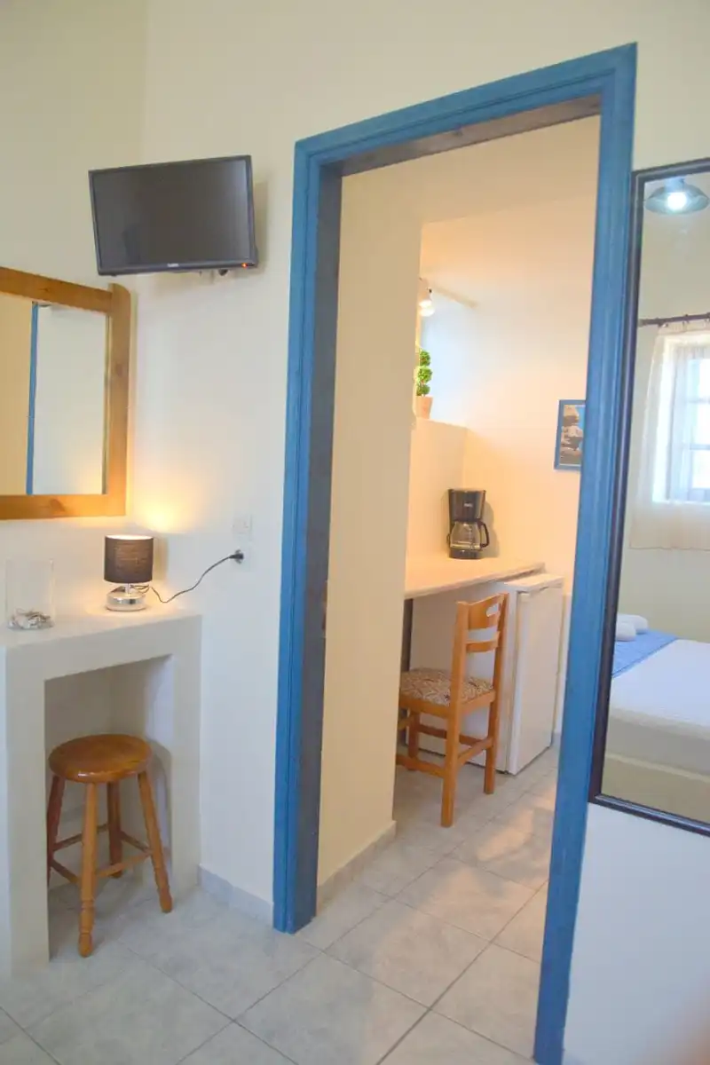 Our property located in the village of Plakes , just 550 metres away from the capital Plaka . In our property you can find two Studios with a small kitchen and one simple double room. Our rooms are clean and cozy and newly renovated.