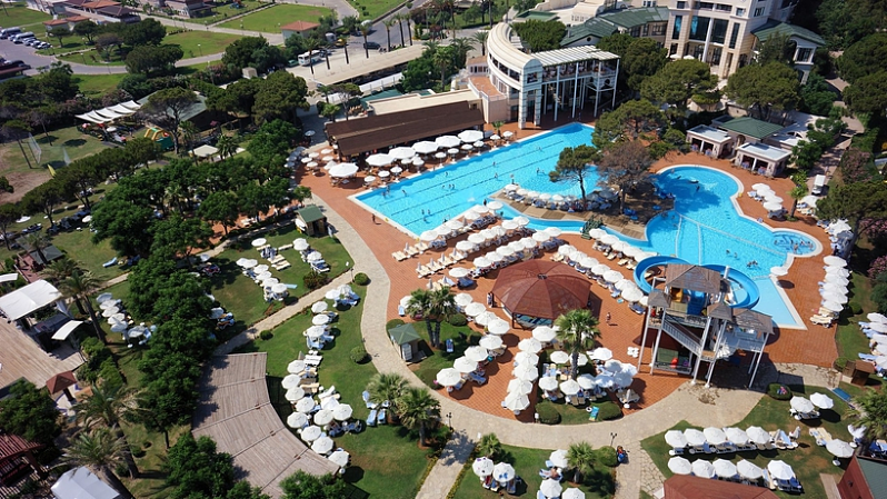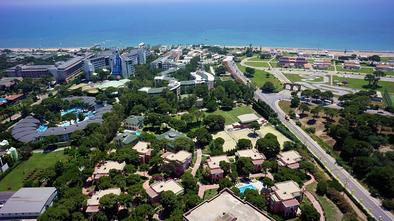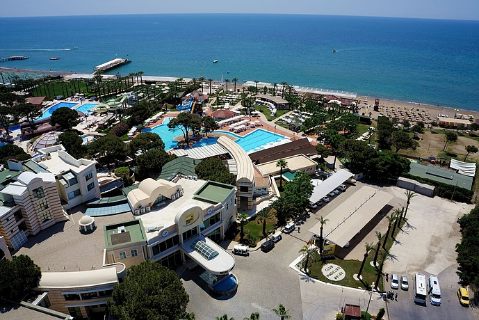 HOTEL: Este hotel cuenta con 87 habitaciones, parque acuático, sistema de aire acondicionado, un vestíbulo, una recepción, peluquería, un auditorio, habitación de juegos, un patio de juegos para los mas pequeños y club infantil. También ofrece a sus clientes tiendas, una cafetería, instalaciones para conferencias, wifi, servicio de lavandería con cargo extra, parking, un restaurante, restaurantes a la carta y bares. SITUACIÓN: Cerca del establecimiento hay el transporte público. Está situado en la playa. A 35 kilómetros del establecimiento los clientes pueden encontrar el aeropuerto de Antalya. HABITACIÓN: Las habitaciones cuentan con aire acondicionado individual, calefacción individual, televisión vía satélite, minibar con cargo extra, secador de pelo, caja de seguridad, balcón o terraza, ducha, una bañera, cama doble, teléfono y radio. INSTALACIONES: El cliente puede encontrar 2 saunas, baño turco, hammam, piscina, tratamientos de belleza, servicio de masajes mediante un abono extra, piscinas cubiertas y climatizadas, un parque acuático con toboganes, un bar al aire libre, tumbonas y sombrillas. También ofrece aeróbic en el agua, aerobic y un gimnasio. Con cargo extra puede disfrutar de motos de agua, banana boat, jugar al billar, surf, tenis, ping pong, dardos, baloncesto, petanca, tiro con arco y montar en bicicleta. También ofrece a sus clientes espectáculos. A 3 kms se dispone de campos de golf. COMIDAS: Se puede reservar en régimen de todo incluido. En lo referente a lo gastronómico se dispone de restaurantes tipo buffet y restaurantes a la carta. Especialidades asíaticas, MÉTODOS DE PAGO: Se admite Mastercard y Visa.