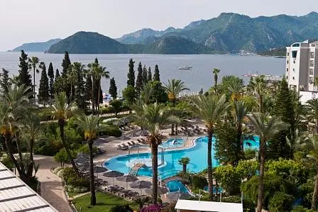 D-Resort Grand Azur Marmaris a fost complet renovat în 2013, fiind situat într-o grădină tropicală, la câțiva pași de Marea Mediterană. Complexul oferă o zonă de plajă privată și o piscină mare în aer liber cu terasă cu şezlonguri.