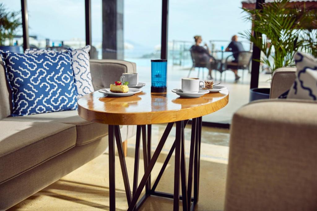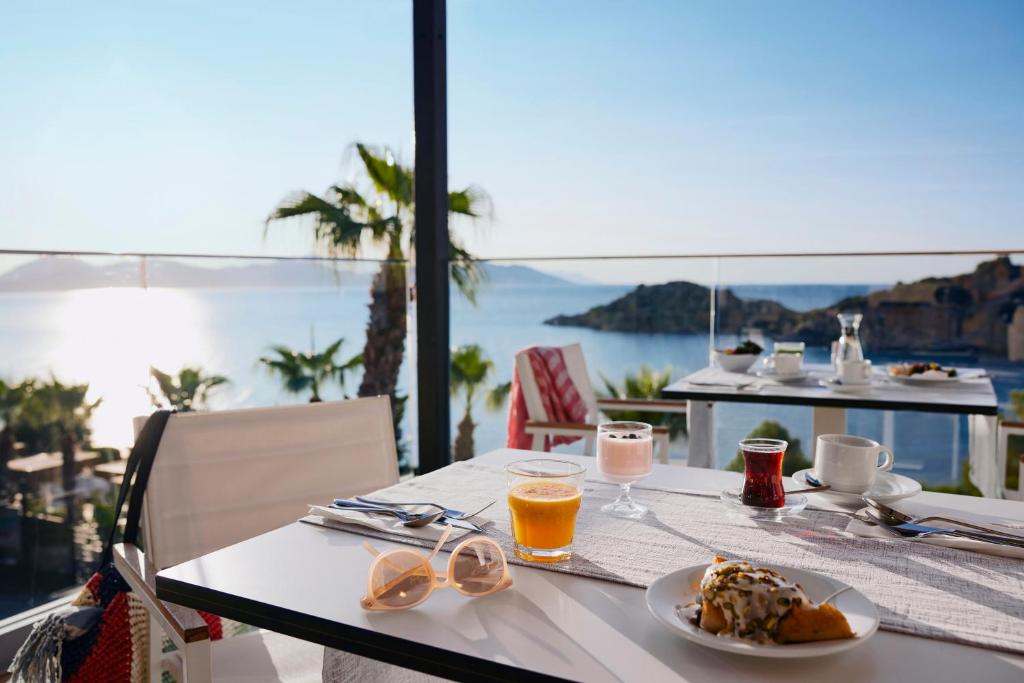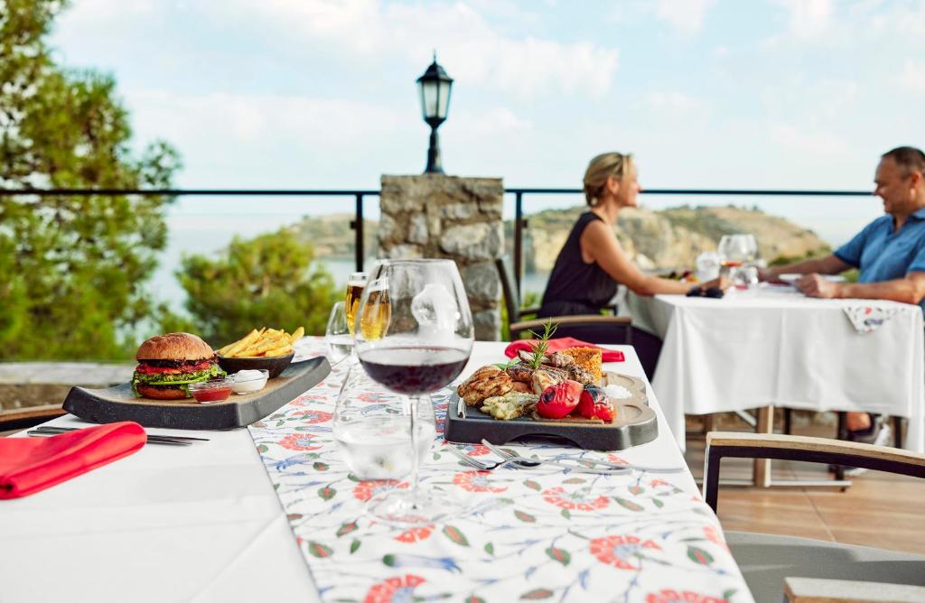Restaurantul principal cu terasă și restaurantul de pe plajă oferă mese tip bufet și vedere panoramică la mare. Pe tot parcursul zilei se servesc băuturi și gustări ușoare. In plus, oaspeții pot savura după-amiaza cafea și produse de patiserie.