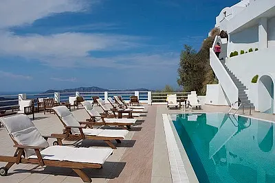Tzekos Villas este format din 11 duble, 4 triple, 1 cvadrupla, 4 duble superior si 2 suite junior, toate cu vedere la caldera, mare si vulcan. Decorul tradițional, diferit în fiecare cameră ofera unicitate si confort. Toate camerele dispun de A/C, telefon, TV prin satelit, radio, mini-bar, seif, uscator de par, balcon, internet WIFI, DVD/CD/MP3 player (in junior suite), halate de baie si papuci (in dubla superior si junior suite), articole cosmetice la baie si facilitati cafea (in junior suite).