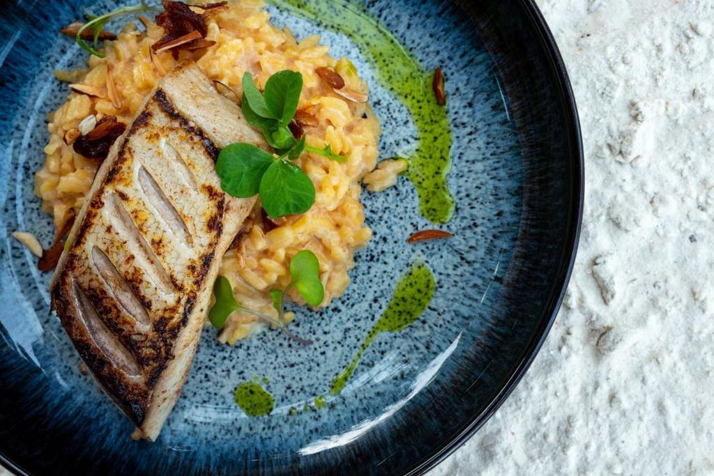 Barul și restaurantul de pe plajă oferă fructe de mare proaspete, bucătărie locală și internațională și vedere la restaurantul The Rock. Oaspeții se pot bucura, de asemenea, de un brunch de duminică, insoțit de muzică.