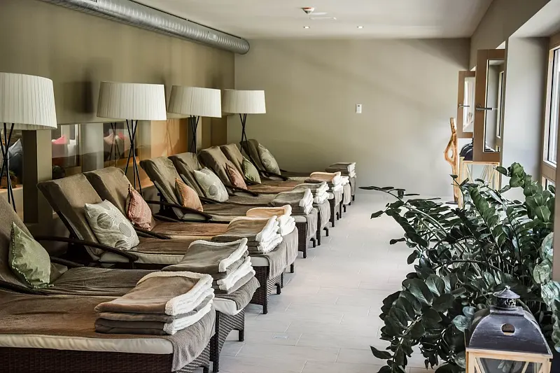 size wellness area 600 m², swimming pool area: children of 16 years. only in the company of an adult - free of charge, outdoor swimming pool 20 m x 5 m, indoor swimming pool 9 m x 5 m, spa area: children of 16 years. only in the company of an adult - free of charge, infrared cabin, relax room, massage - free of charge, beauty center - free of charge, garden, deck chair - free of charge, sun umbrellas - free of charge