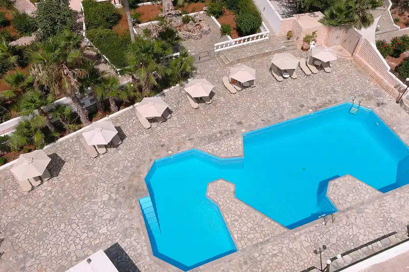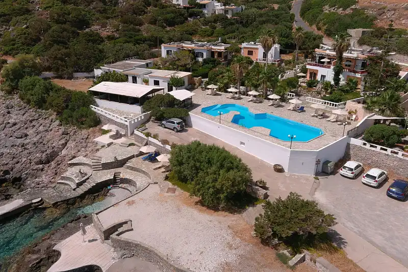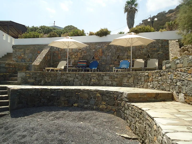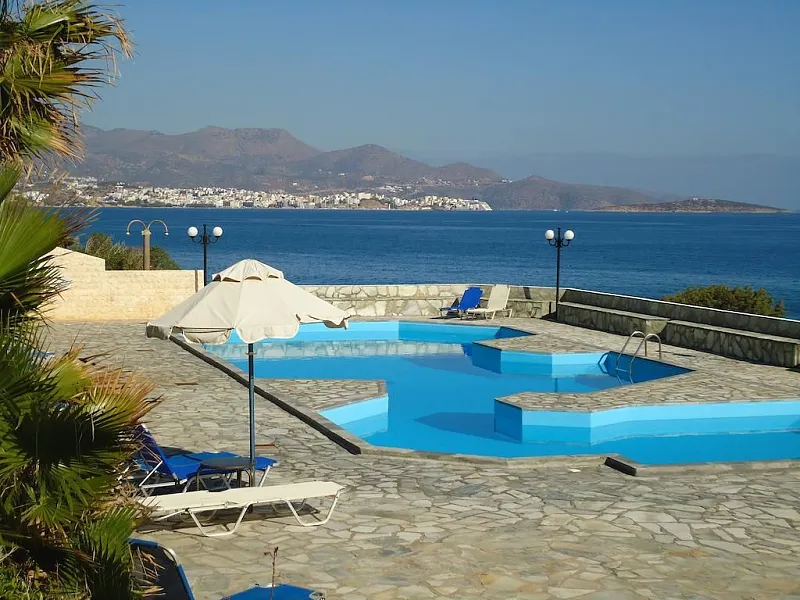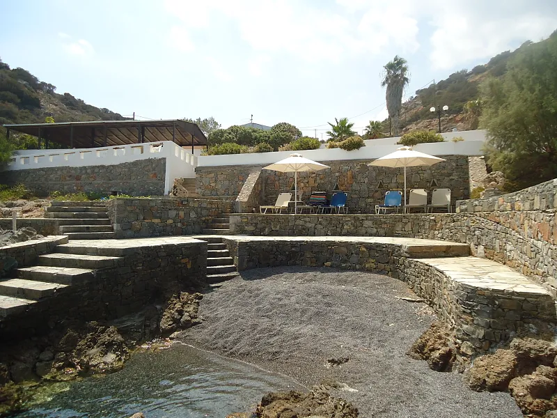 Vangelis Villas is a family corporation, located directly on the coastal line of Agios Nikolaos, in Crete, overlooking the endless blue of the Aegean sea through its private tranquil bay.The villas nestle in the hillside just above the shoreline with a superb view of the sea flanked by mountains on one hand, and at night, the twinkling lights of Agios Nikolaos across the bay on the other.The 3 villas, the two first floor villas/apartments and the two ground floor apartments are comfortably furnished in a traditional Cretan style and equiped with individual terraces bordered by bougainvillea and palm trees, with spectacular views to the Mirabello gulf.Sea water pool deserves a special mention since you may relax and get the sensationof well-earned rest.