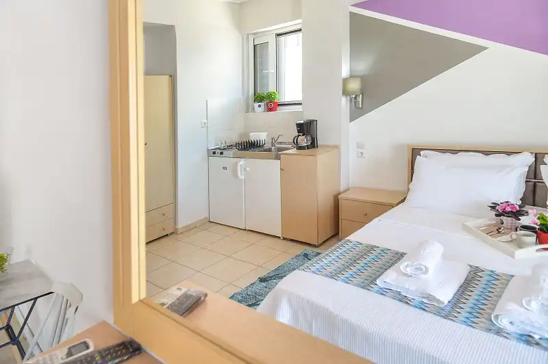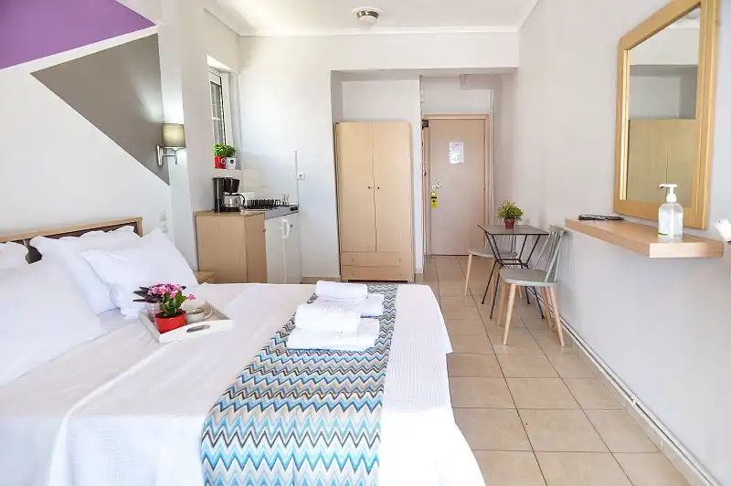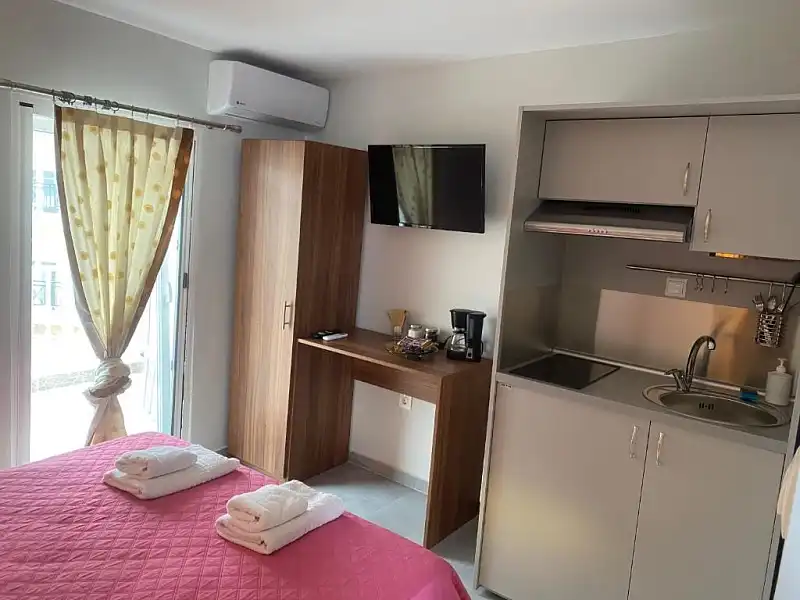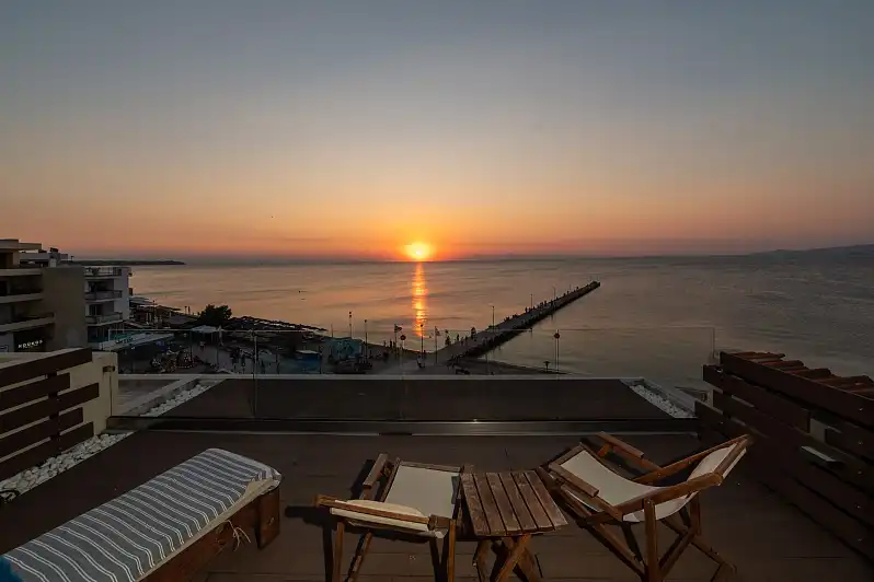 Located at the heart of Peraia, Vento di Mare offers a welcoming getaway with stunning sea and town views, just a stone's throw from the beach. The property features a selection of seven thoughtfully designed accommodations, including sea-view studios, cozy double rooms, and a rooftop suite with a private terrace. With fully equipped kitchens in select rooms and modern amenities like air conditioning and complimentary Wi-Fi, Vento di Mare ensures a comfortable and convenient stay for all guests.