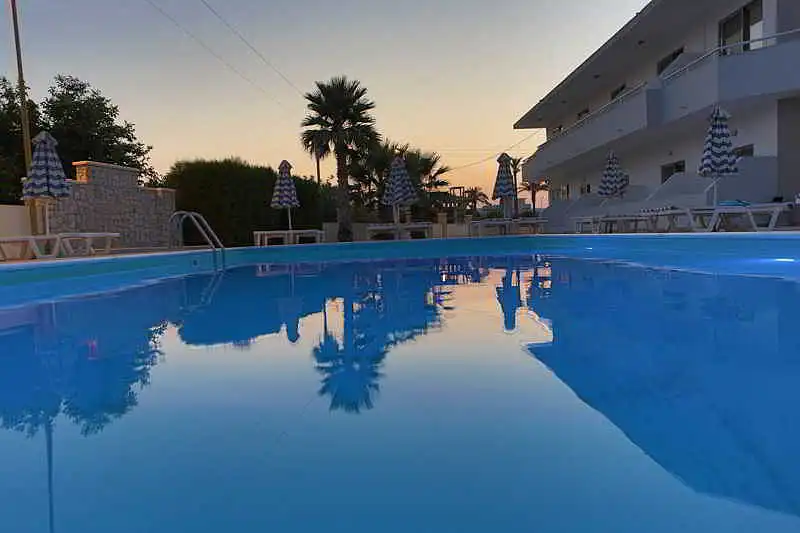 Set on the outskirts of Faliraki, at the foothills of the Prophet Elias Mountain and next to the Anthony Quinn Bay, this hotel is a perfect place to relax and enjoy the tranquillity of the surroundings. It is just a short walk to the Faliraki beach and the city centre where there are a good selection of shops, bars, cafes, restaurants and supermarkets. Nearby visitors can enjoy exploring the picturesque bay of Kathara and the Kalithea Springs, the best attraction on the island. Families will have plenty of fun at the Waterpark, the largest one in Europe. The hotel offers all the necessary amenities and services to suit the needs of their guests. Spacious, pleasant studios and apartments have balconies ideal for relaxing on while admiring the views of the pool and garden. They are equipped with all the modern conveniences that will guarantee the enjoyment of the guests.