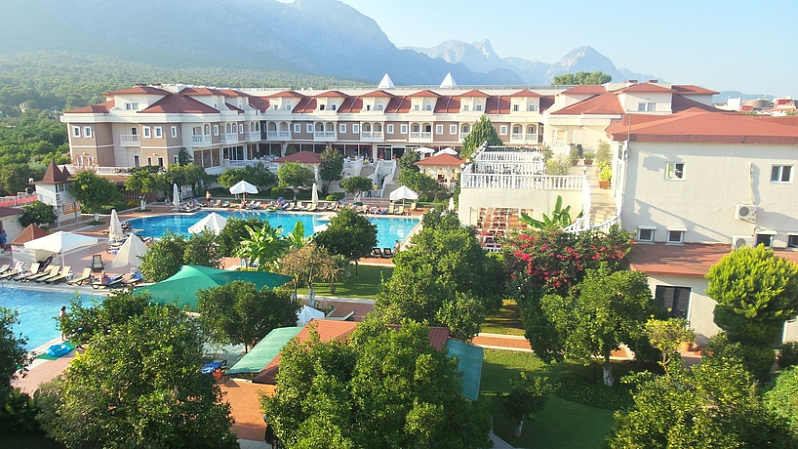 HOTEL: Este complejo reformado en 2008, ideal para unas vacaciones en familia, cuenta con 235 habitaciones, una playa privada, una zona ajardinada y terraza. Este establecimiento con sistema climatizado, cuenta con un vestíbulo con servicio de salida express, una recepción, cambio de divisa y 3 ascensores. Además cuenta con una peluquería, un auditorio, habitación de juegos, un patio de juegos para los mas pequeños, club infantil, una cafetería, un bar, una discoteca, un restaurante, instalaciones para conferencias e internet de pago directo. Abonando un cargo extra dispone de ofrece servicio de lavandería y servicio de habitaciones. Los clientes pueden disponer de un parking y un alquiler de bicicletas. SITUACIÓN: Este hotel, está en una zona ajardinada. A un kilómetro está situado el centro de Kemer donde puede encontrar restaurantes, bares, la animada vida nocturna y tiendas. A 200 metros pueden disponer de una playa. A 1,2 kilómetros está situado una playa privada. Este hotel, está a 1,5 kilómetros del parque de Kugulu. Está situado a unos 30 minutos del centro turístico de Antalya. Se sitúa a unos 90 minutos de Saklikent, a 65 km del establecimiento los clientes pueden encontrar el aeropuerto de Antalya. HABITACIÓN: Habitaciones dobles estándar, cuarto de baño con bañera, aseo, secador de pelo, teléfono de línea directa, televisión vía satélite, conexión a internet, minibar, cafetera, tetera, sistema de aire acondicionado individual, balcón o terraza y caja fuerte con cargo extra. INSTALACIONES: Los clientes tienen a su disposición 4 piscinas, tobogán, 3 piscinas exteriores y una piscina cubierta y climatizada. También cuenta con una zona de baño infantil, un bar al aire libre, tumbonas, sombrillas y 2 terrazas. Puede realizar actividades como aeróbic en el agua y aerobic. Los huéspedes pueden disfrutar de un gimnasio, una sauna, servicio de masajes con cargo extra y tratamientos de spa. Mediante un pago adicional puede disfrutar de deportes acuáticos, esquí acuático, motos de agua, windsurf, barco torpedo, vela, barco torpedo, catamarán, canoa, barca a pedales, jugar al tenis, jugar al ping pong, billar, volley playa y bicicleta. Se ofrece a los huéspedes un programa de entretenimiento. En la playa puede encontrar tumbonas y sombrillas. MÉTODOS DE PAGO: Se acepta American Express, Diners Club y Mastercard. OTRAS: Se proporciona todas las comidas en forma de buffet. También cuenta con almuerzo servido en menú y cena servida a la carta.