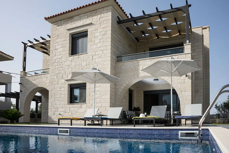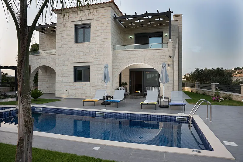 The luxurious Villa Azalea is located in the seaside village of Almyrida in Chania, Crete.