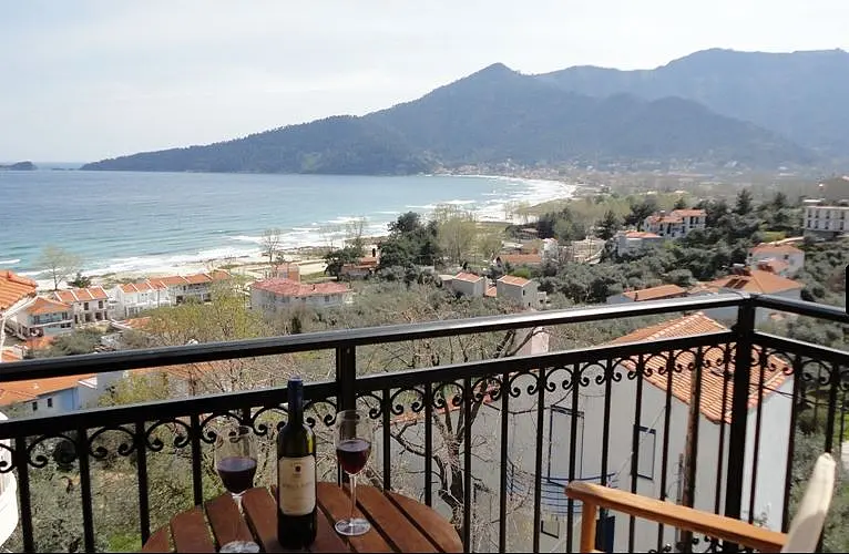 Vila este situata in Skala Panagia, la 300 m de plaja de nisip Golden Beach, lunga de 3 km, cu apa limpede cristalina, restaurante, baruri, magazine.