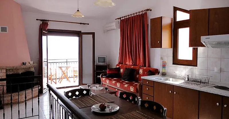 Vila are 2 studiouri si 2 maisonette echipate cu aer conditionat, chicineta, TV, balcon, baie cu dus, uscator de par, vedere la mare.Capacitate totala: 10 adulti si 2 copii.